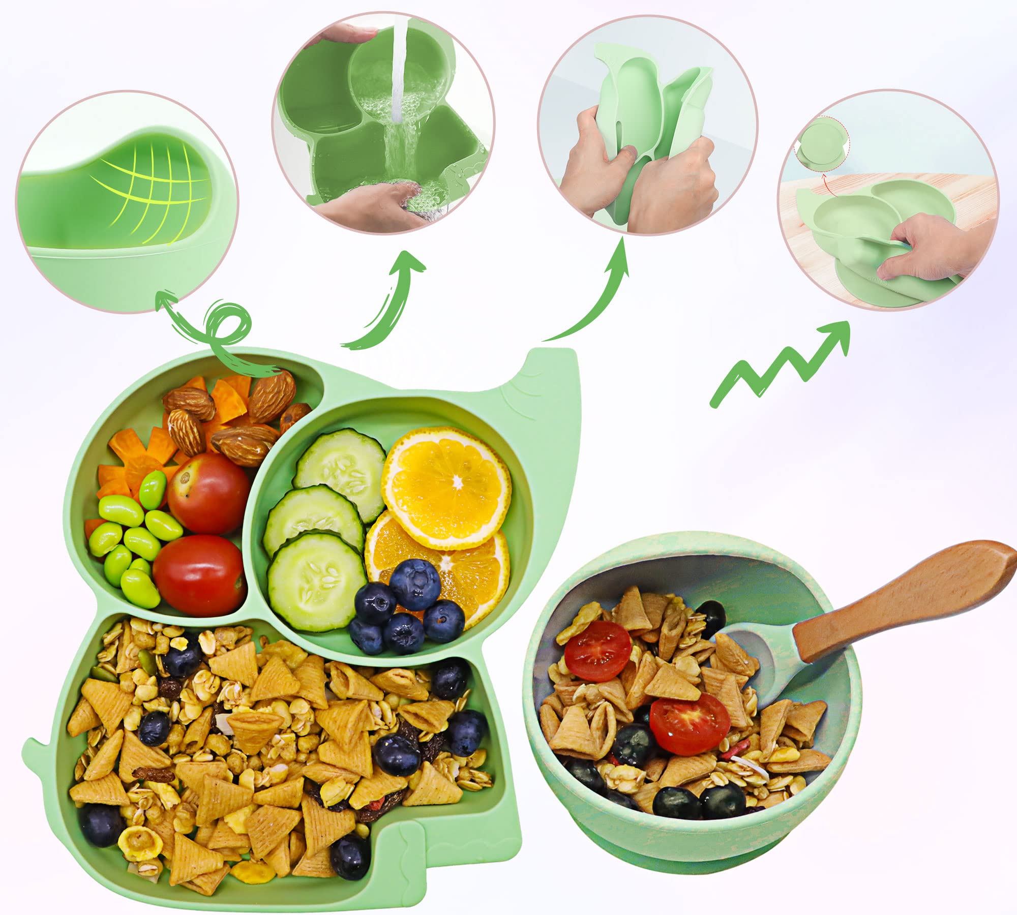 Perfekt für die ersten Essversuche deines Babys! Das FILOWA 5-teilige Silikon-Set macht das Essenlernen zum Spaß. Mit teller und Schüssel mit starkem Saugnapf - die bleiben wirklich da, wo sie hingehören! Aus 100% lebensmittelechtem Silikon, BPA-frei und geruchlos. Super weich und hautfreundlich, perfekt für zahnende Babys. Das süße Elefanten-Design in blau begeistert die Kleinen, und die geteilten Fächer im Teller vermeiden Geschmacksübertragung. Inklusive Löffel, Gabel und verstellbarem Lätzchen - alles, was du für die Beikost-Phase brauchst! Spülmaschinenfest, mikrowellengeeignet und von -40°C bis 240°C hitzebeständig. Einfach reinigen, zusammenklappbar für unterwegs - einfach praktisch! Das ideale Geschenk für junge Eltern zur Geburt oder zum ersten Brei!