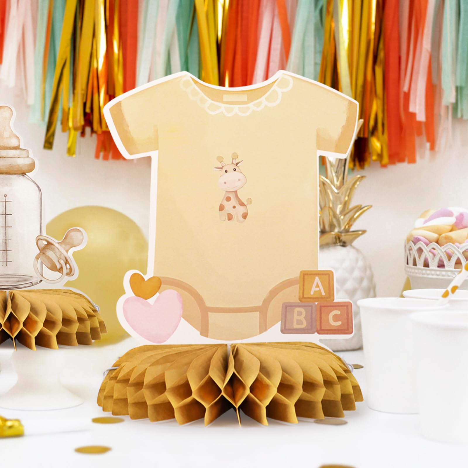 Mach die Babyparty zu einem unvergesslichen Erlebnis! Dieses niedliche 6-teilige Deko-Set enthält süße Motive wie 'Oh Baby', Babyflasche, Kinderwagen, Strampler und Babyfüßchen. Aus stabilem Karton mit praktischer Bienenwaben-Basis für sicheren Stand. Einfach aufzubauen - mit vorgefertigten Teilen und Klebepunkten. Perfekt für Tischdeko, Buffet oder Geschenketisch. Egal ob für Jungen, Mädchen oder Gender Reveal Party - diese Deko passt immer! Schafft eine gemütliche Atmosphäre und ist ein echter Hingucker. Stressfreie Dekoration für die schönste Party vor der Geburt!