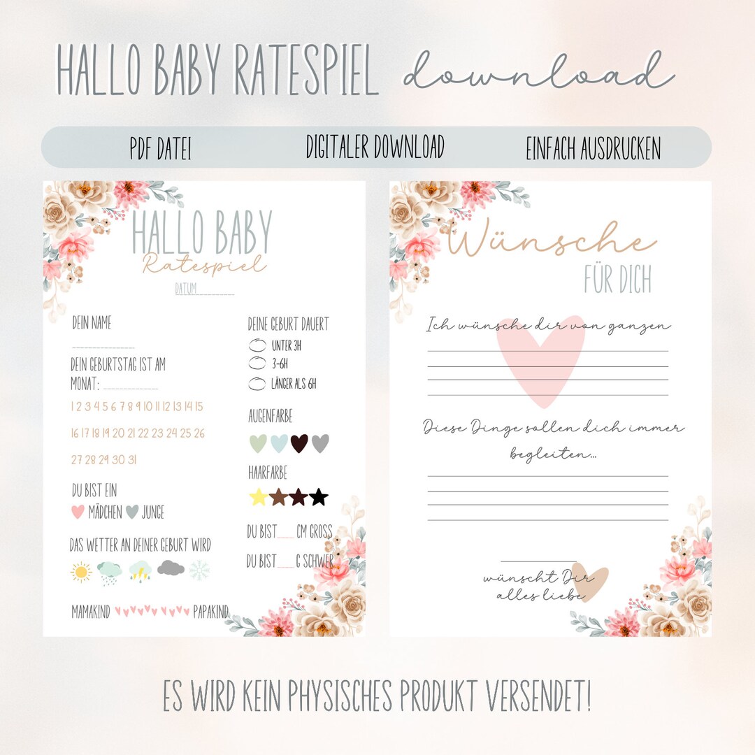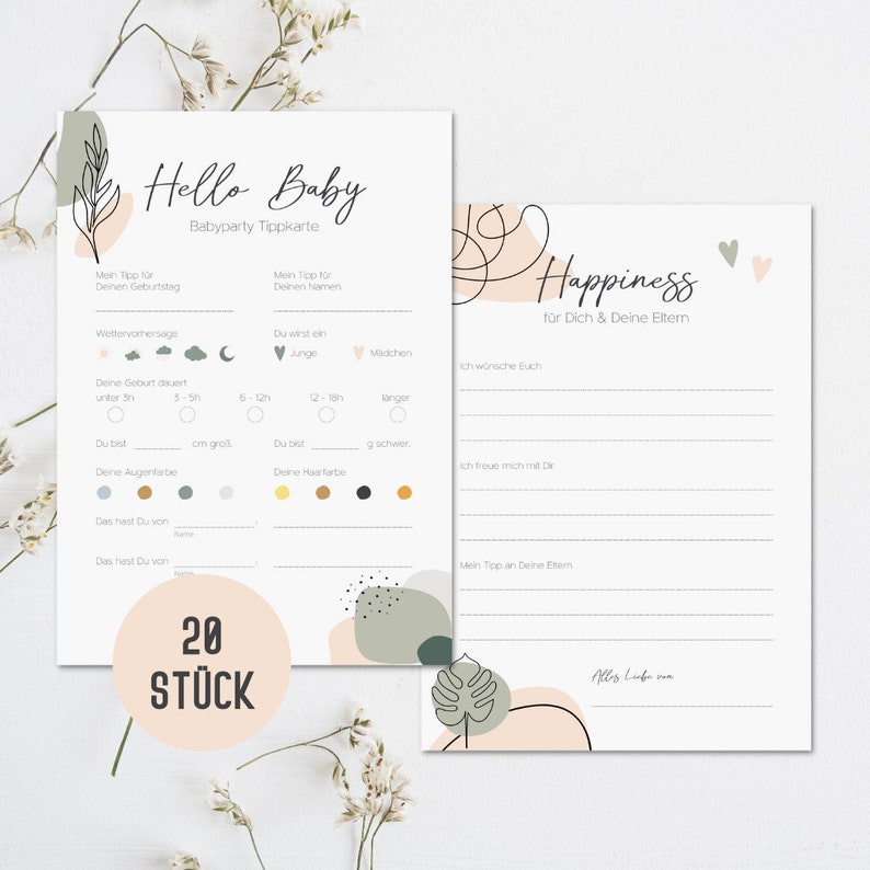 Damit wird deine Babyparty unvergesslich! Diese 20 Ratespielkarten im modernen Boho-Design bringen richtig Stimmung in deine Feier. Deine Gäste können raten, wann das Baby kommt, wie es heißen wird, wie viel es wiegt und noch viel mehr. Super für Gender Reveal Partys, aber auch für klassische Babyshower. Das coole Blau-Design passt zu Jungen, Mädchen und Überraschungen gleichermaßen. Die Karten sind aus richtig stabilem Karton, also nichts verknittert oder reißt schnell. Nach der Party sind sie ein wunderschönes Andenken an diesen besonderen Tag - viel schöner als irgendwelche Fotos! Und das Beste: Alles wird klimaneutral in Deutschland gedruckt. Einfach vor der Party auslegen, Stifte dazu - und schon hast du das perfekte Spiel, das alle Gäste miteinander verbindet und für jede Menge Lacher sorgt!