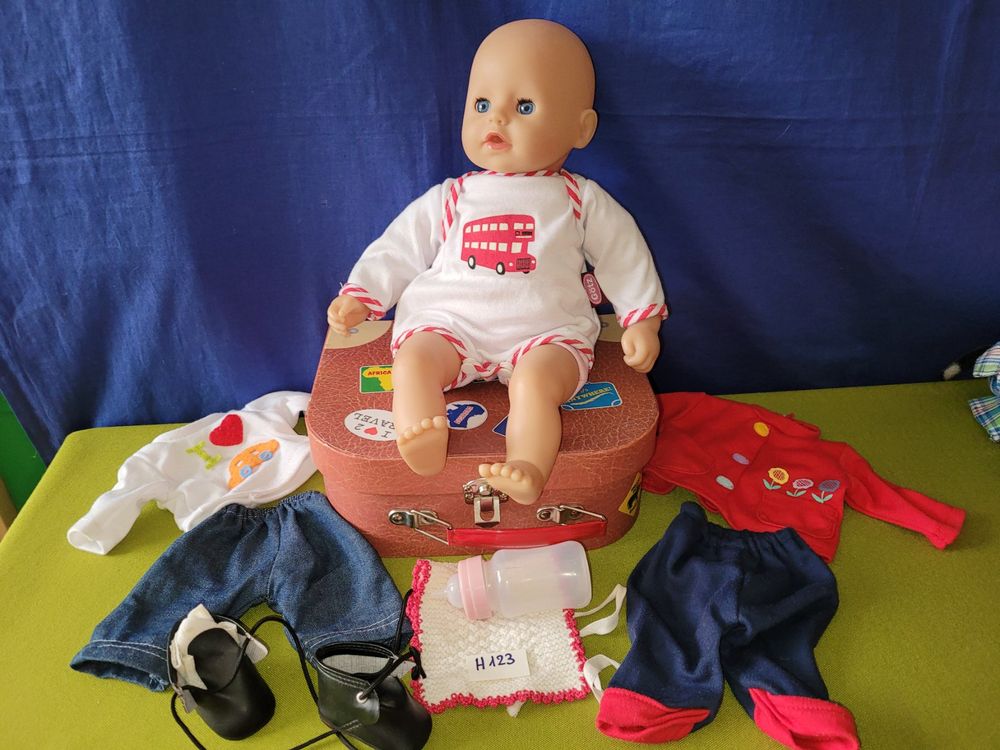 Total süßes Puppenzubehör für alle kleinen Muttis! Dieses 13-teilige Set hat alles, was man für die Puppenpflege braucht: Wickeltasche, niedliches Kleidchen, Kamm, Spiegel, Windeln, Lätzchen, Aufkleber, Essgeschirr, Schnuller und zwei Fläschchen. Passt perfekt für 16-18 Zoll Babypuppen. Die praktische Tasche ist super zum Verstauen und Mitnehmen. Das Spielset fördert Rollenspiele und soziale Fähigkeiten - die Kinder lernen spielerisch, sich zu kümmern. Alle Teile sind aus ungiftigen, hochwertigen Materialien und entsprechen den internationalen Sicherheitsstandards. Ab 3 Jahren geeignet. Einfach ein tolles Geschenk für kleine Puppenmamas!