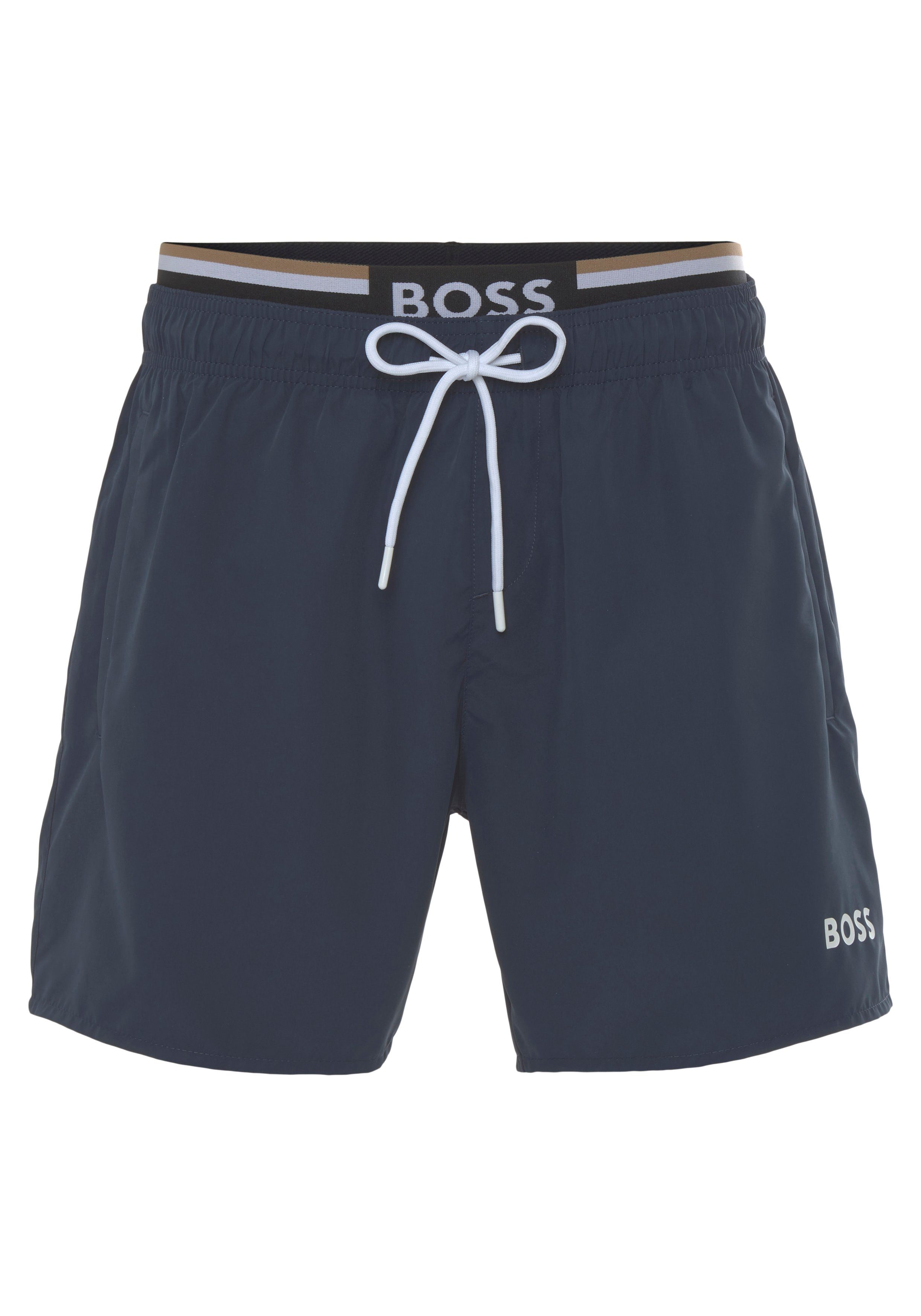 Style am Pool oder Strand - mit dieser Badehose von BOSS! Aus hochwertigem Material-Mix mit Elasthan für perfekte Passform und Komfort. Schnelltrocknend - nach dem Schwimmen nicht lange nass. Mit UV-Schutz - schützt deine Haut vor schädlicher Sonneneinstrahlung. Der Tunnelzug im Elastikbund sorgt für optimalen Sitz ohne zu zwicken. Sportives Design mit modernem Look - nicht zu kurz, nicht zu lang. Perfekt für Urlaub, Schwimmbad oder einfach nur zum Entspannen in der Sonne. Das Logo-Detail gibt den klassischen BOSS Touch. Einfach anziehen und wohlfühlen - ob beim Schwimmen, Sonnenbaden oder Beach-Volleyball. Sieht gut aus, sitzt perfekt und trocknet schnell - mehr braucht eine gute Badehose nicht. Mach deinen Sommer noch stylischer!
