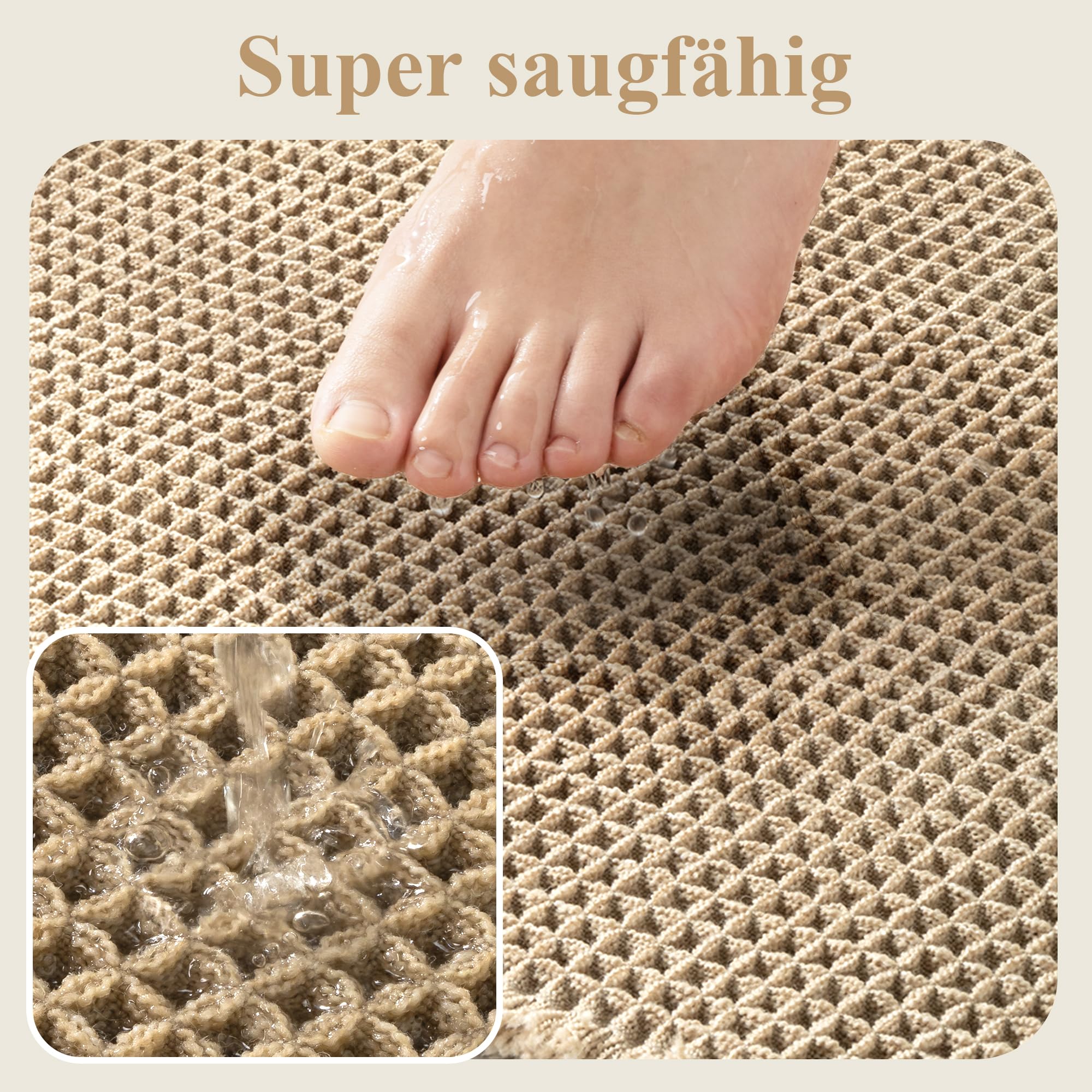 Endlich ne Badematte, die wirklich hält, was sie verspricht! Die FASCINATDECO Waffle-Badematte ist mega weich und saugt Wasser auf wie ein Schwamm. Aus hochdichtem Mikrofasergewebe - deine Füße fühlen sich nach dem Duschen direkt wohl und trocknen super schnell.