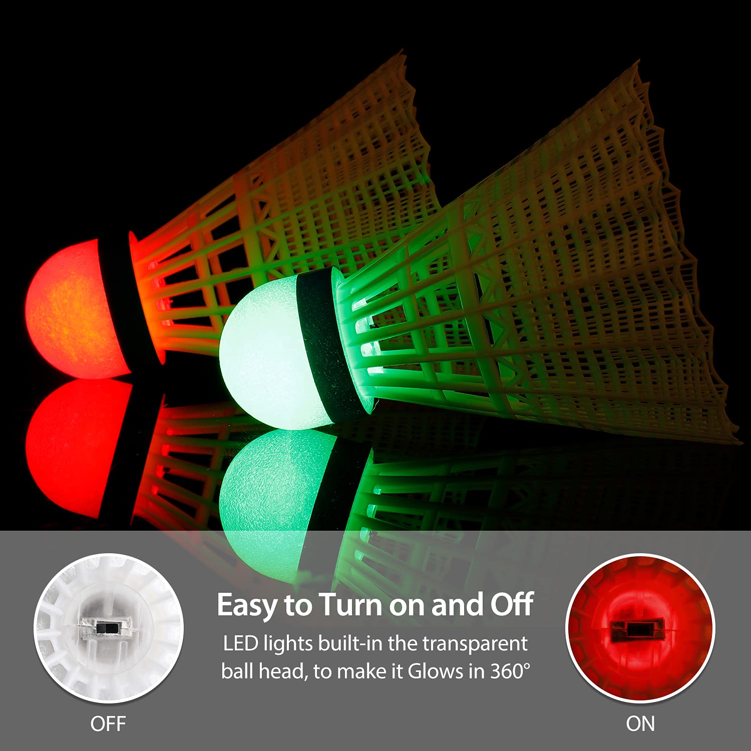 • Abaodam 4x LED Badminton Bälle - Leuchtende Nylon Federbälle Für Nacht-Training