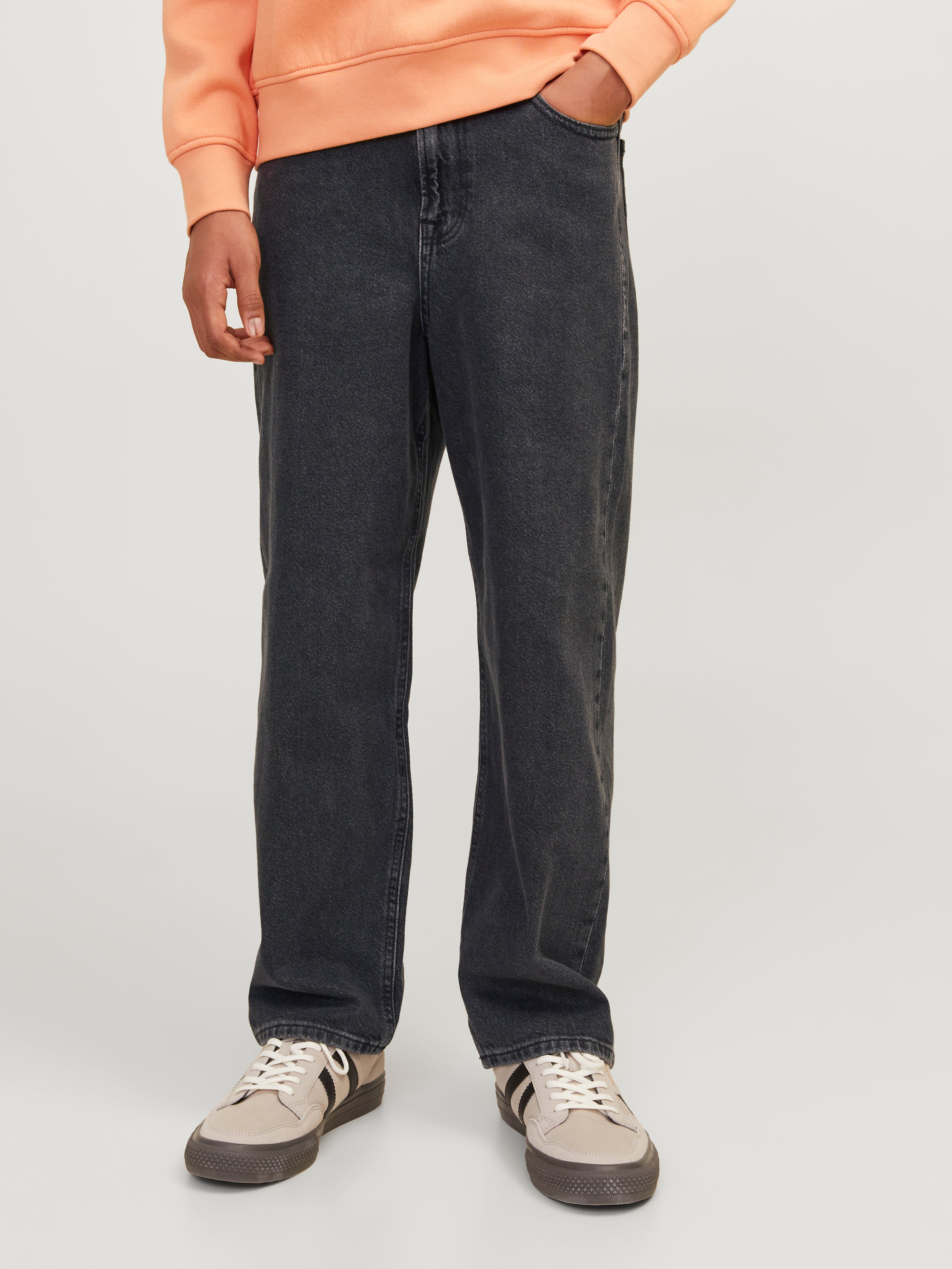 Coole Jeans für coole Kids! Diese Baggy Fit Jeans von JACK & JONES ist genau das, was Teenager wollen. Mit lockerer Passform, hohem Bund und weiten Beinen - total bequem und voll im Trend. Der Used-Look mit Stonewashed-Optik ist einfach angesagt. Aus 95% Baumwolle und 5% recycelter Baumwolle - gut für die Umwelt und angenehm zu tragen. Mit Gesäßtaschen, Münztasche und Reißverschluss hat sie alles, was eine gute Jeans braucht. Perfekt für Schule, Freizeit oder Treffen mit Freunden. Dein Sohn wird diese Jeans lieben! In Junior-Größen für 8-16 Jahre - da ist die passende Größe dabei.