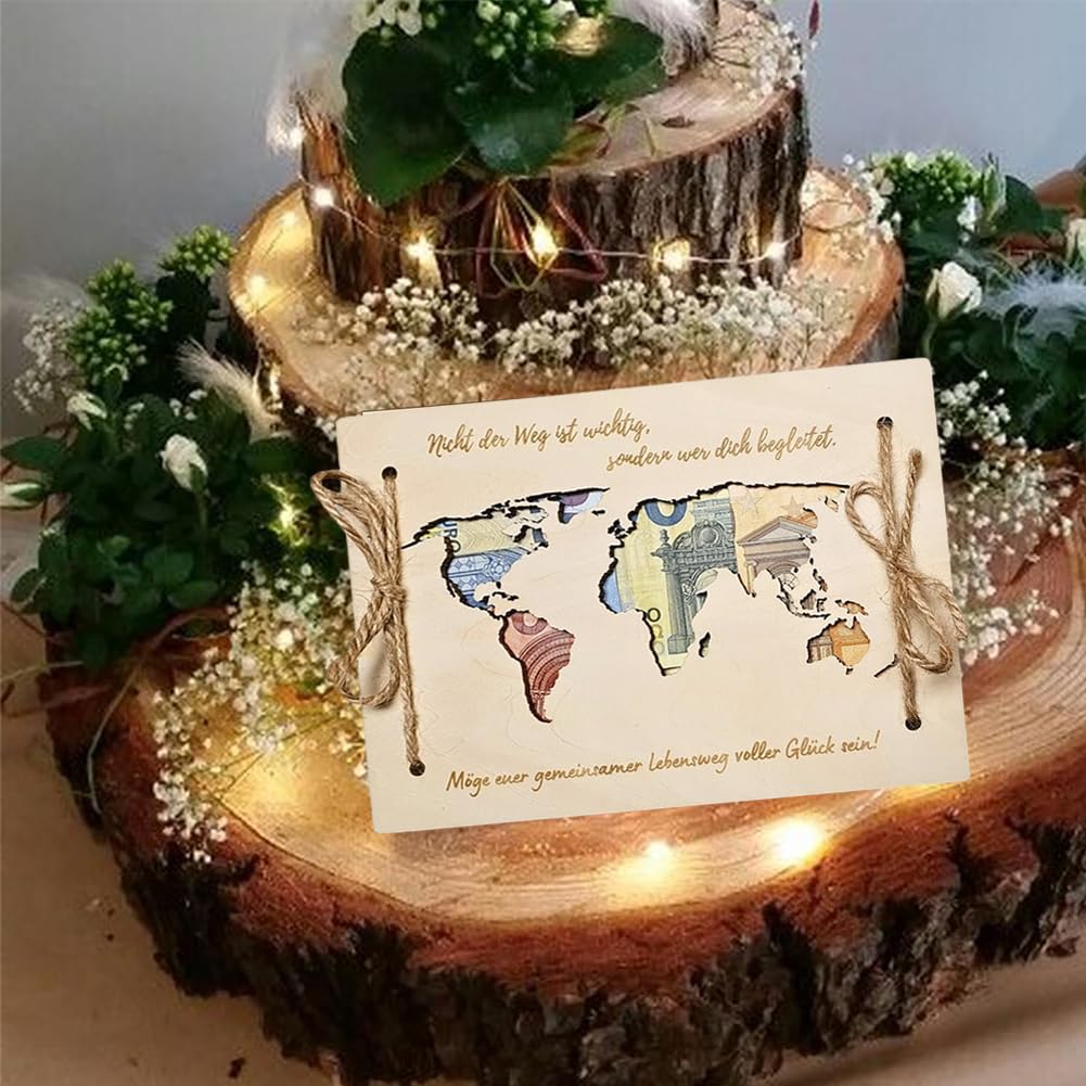 Suchst du ein besonderes Geschenk für einen besonderen Anlass? Dieses 2-teilige Set von BaiDekun ist perfekt für Geldgeschenke! Du bekommst eine schicke Holz-Geldbörse und einen passenden Schlüsselanhänger - beide mit einer Weltkarte zum Rubbeln der besuchten Orte. So wird jedes Geldgeschenk zu einer persönlichen und emotionalen Überraschung! Die hochwertige Verarbeitung aus robustem Holz garantiert Langlebigkeit und die Geldbörse bietet genug Platz für Banknoten. Perfekt für Hochzeiten, Geburtstage, Reisen oder andere besondere Anlässe. Deine Freunde und Familie werden begeistert sein von diesem kreativen und persönlichen Geschenk! Einfach das Geld in die Holz-Geldbörse stecken, den Schlüsselanhänger dazu - und schon hast du ein Geschenk, das in Erinnerung bleibt. Viel besser als langweilige Umschläge!