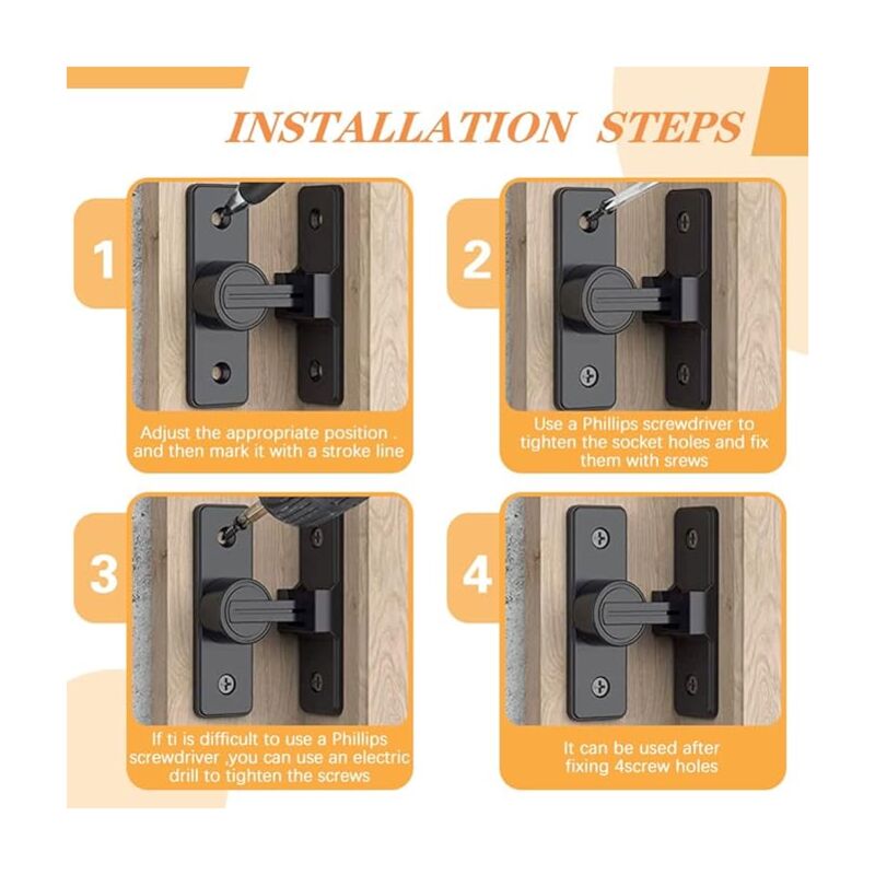 Sicherheit und Stil in einem! Diese robusten Schieberiegel aus Edelstahl in schwarz sind perfekt für Türen, Tore, Fenster und Schränke. Das 2er-Set enthält 3-Zoll-Riegel (70x50mm) mit je 4 Schrauben. Einfache Montage - keine professionelle Hilfe nötig. Korrosionsbeständig für Innen- und Außenbereich. Der versenkte Schrauben sorgt für glatte Oberfläche. Ideal für Gartentore, Scheunentore, Zimmertüren und mehr. Stilvolles Design passt zu jedem Einrichtungsstil. Mehr Sicherheit für dein Zuhause!