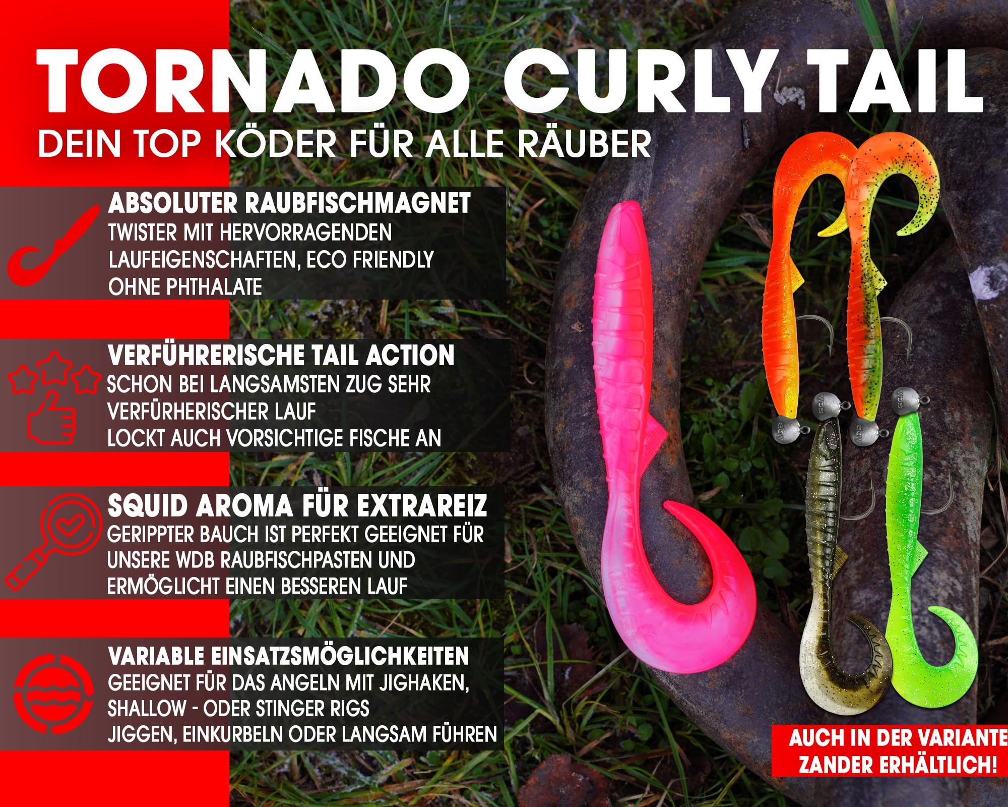 Angeln war noch nie so einfach! Diese Wild Devil Baits Tornados kommen komplett fertig montiert mit hochwertigen Jighaken - einfach aus der Box nehmen und los geht's! Die großen Curly Tails erzeugen starke Druckwellen, die Raubfische einfach lieben. Perfekt für Barsch, Zander und Hecht. Mit speziellem Squid-Aroma und Aminosäuren - die Fische beißen öfter und halten den Köder länger im Maul. Eco-friendly, ohne Phthalate und super robust. Im praktischen Blister mit 5 verschiedenen Shockwave Shads. Egal ob jiggen, vertikal angeln oder Finesse-Techniken - mit diesen Ködern fängst du garantiert mehr!