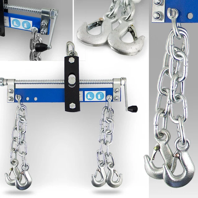 Mit 4 Ketten (je 28,5cm lang) und Sicherheitshaken - absolut sicher und stabil. Die Mikro-Einstellkurbel ermöglicht präzises Balancieren mit einer Hand. Drei Befestigungspunkte für flexible Anpassung an verschiedene Motorgrößen.