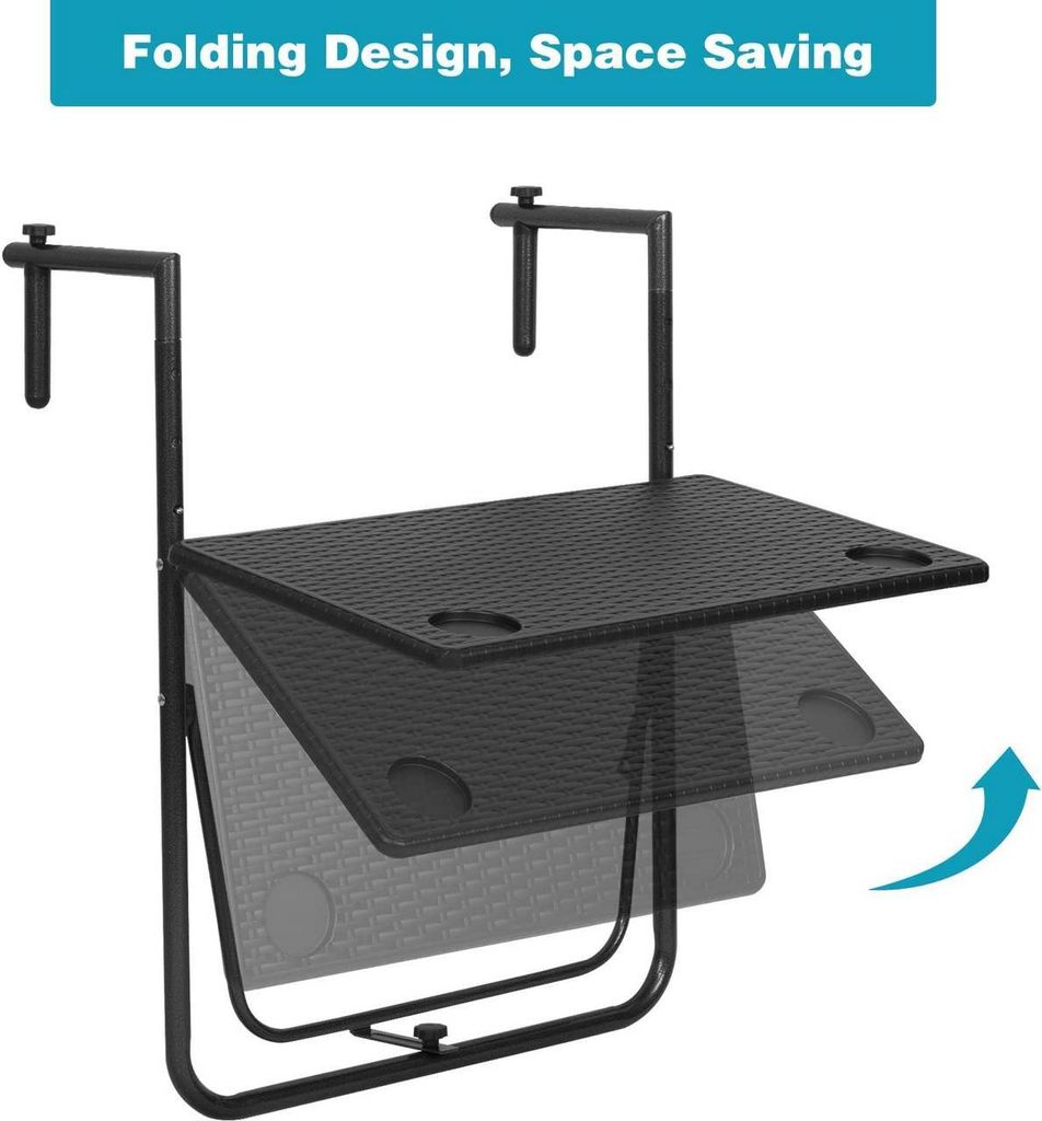 Dieser Balkonhängetisch von KOMFOTTEU ist der absolute Allrounder für deine Terrasse! Maße: 60,5x48 cm, aus robustem Eisen und komplett klappbar - super platzsparend. Die Höhe lässt sich von 61,5 bis 82,5 cm verstellen, also perfekt an deine Bedürfnisse anpassbar. Tragkraft bis 20 kg, also stabil genug für Getränke, Snacks oder deine Lieblingspflanzen. Das coole ausgehöhlte Design kann sogar als Blumentopfhalter dienen. Montage ist kinderleicht und passt auf Geländer von 4,5-10 cm Breite. Schwarz, voll geölt gegen Kratzer - hält ewig! Einfach aufhängen, ausklappen und den Sommer genießen!