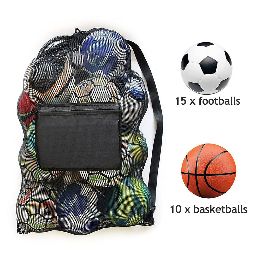 Endlich Ordnung im Sportzeug! Dieses große Ballnetz von Hongmo bietet Platz für 10-15 Bälle - perfekt fürs Fußballtraining, Verein oder Schule. Mit 105x77cm richtig geräumig! Das Material ist wasserdicht und super strapazierfähig, hält also auch mal schlechtem Wetter stand. Der praktische Kordelzug macht das Öffnen und Schließen zum Kinderspiel - Bälle rausnehmen oder reinwerfen geht ratzfatz. Aber nicht nur für Bälle geeignet - auch toll für andere Sportausrüstung oder sogar als Tauchutensilien-Organizer. Sieht dazu noch stylisch aus! Nie wieder einzeln Bälle tragen - einfach alles ins Netz und los geht's!