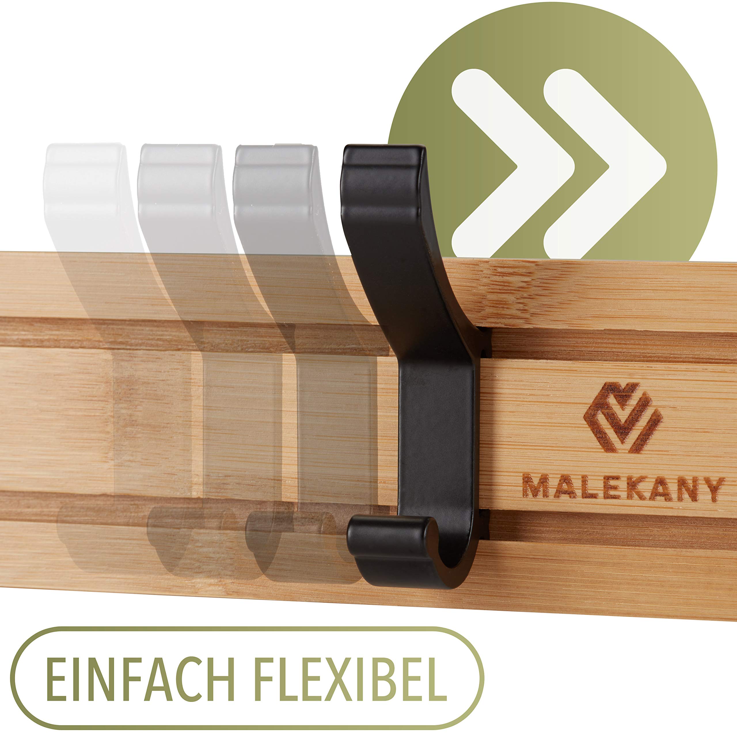 Schluss mit Kleiderbergen auf dem Stuhl! Diese stylische Türgarderobe aus Bambus bringt Ordnung in dein Zuhause. Mit 5 voll verstellbaren Haken, die du nach Belieben verschieben kannst - perfekt für voluminöse Winterjacken neben schmalen Handtüchern. Jeder Haken trägt bis zu 3kg, also auch schwere Kleidungsstücke sind kein Problem. Aus nachhaltigem Bambus gefertigt - härter als die meisten Hölzer und komplett kompostierbar. Die elegante Kombination aus Bambus und tiefschwarzen Elementen sieht einfach klasse aus. Einfache Montage: Entweder an der Tür (bis 2cm Türfalzstärke) mit den mitgelieferten Türprotektoren oder an der Wand. Inklusive Moosgummi-Auflage, damit weder die Tür verkratzt noch was klappert. Ideal auch fürs Badezimmer - die hochwertigen Materialien halten selbst hoher Luftfeuchtigkeit stand. Minimalistisches Design, maximale Funktionalität. Mach deine Tür zum organisierten Kleiderparkplatz!
