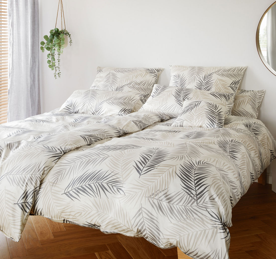 Träumst du von einer Bettwäsche, die sich anfühlt wie ein Luxus-Hotel? Diese Bambus-Baumwoll-Satin Bettwäsche macht's möglich! Das exklusive Palm-Design in drei Farbvarianten bringt Urlaubsfeeling ins Schlafzimmer.