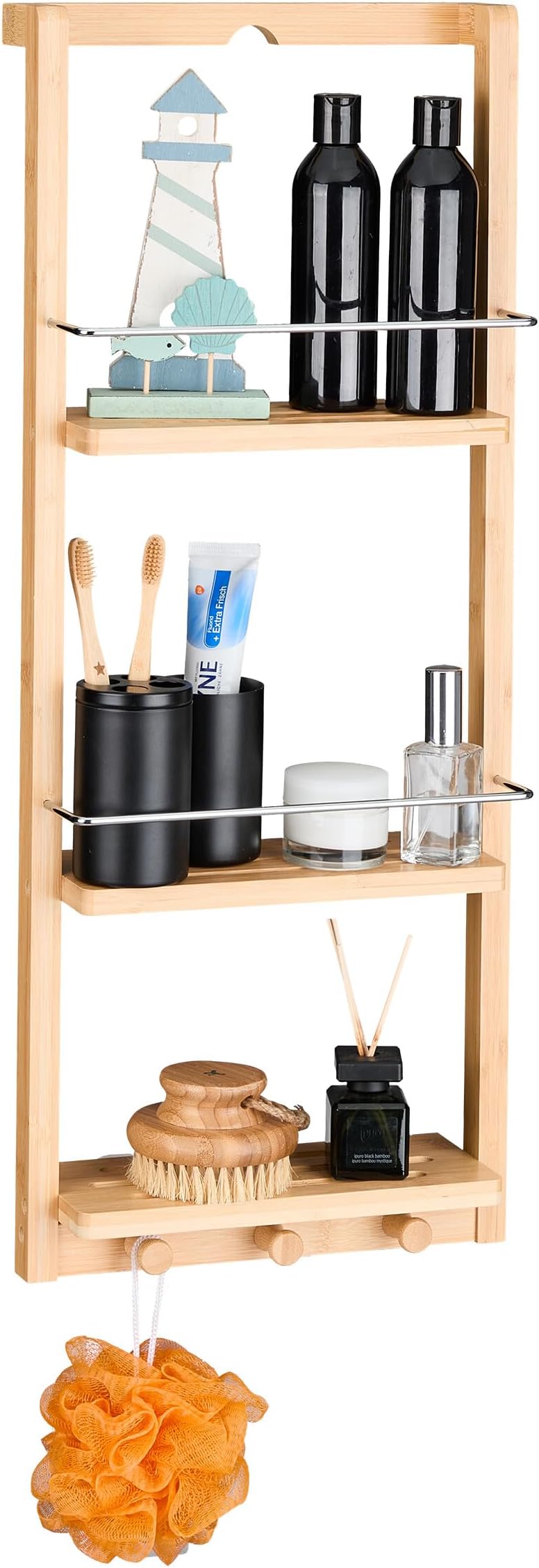 Endlich Ordnung in der Dusche! Dieses wunderschöne Duschregal aus Bambus bringt Stil und Funktionalität in dein Badezimmer. Mit drei praktischen Ablagen hast du alles griffbereit: Shampoo, Duschgel, Conditioner, Seife, Rasierer - nichts muss mehr auf dem Duschrand stehen. Die Maße von 65x28x15,5cm sind ideal für kleine Badezimmer und bieten trotzdem reichlich Stauraum. Die hohen Ränder (8cm bei den großen, 3,5cm bei der kleinen Ablage) sorgen dafür, dass nichts herunterfällt. Bambus ist perfekt für feuchte Umgebungen - rostet nicht, nimmt Feuchtigkeit gut auf und sieht dabei natürlich schick aus. Einfach an einem Haken oder einer Schraube aufhängen - keine Montage nötig! Tipp: Nicht direkt unter den Duschstrahl hängen, dann hält das Regal ewig. Auch in der Küche macht es als hübsches Hängeregal eine gute Figur. Nachhaltig, praktisch und verdammt stylisch!