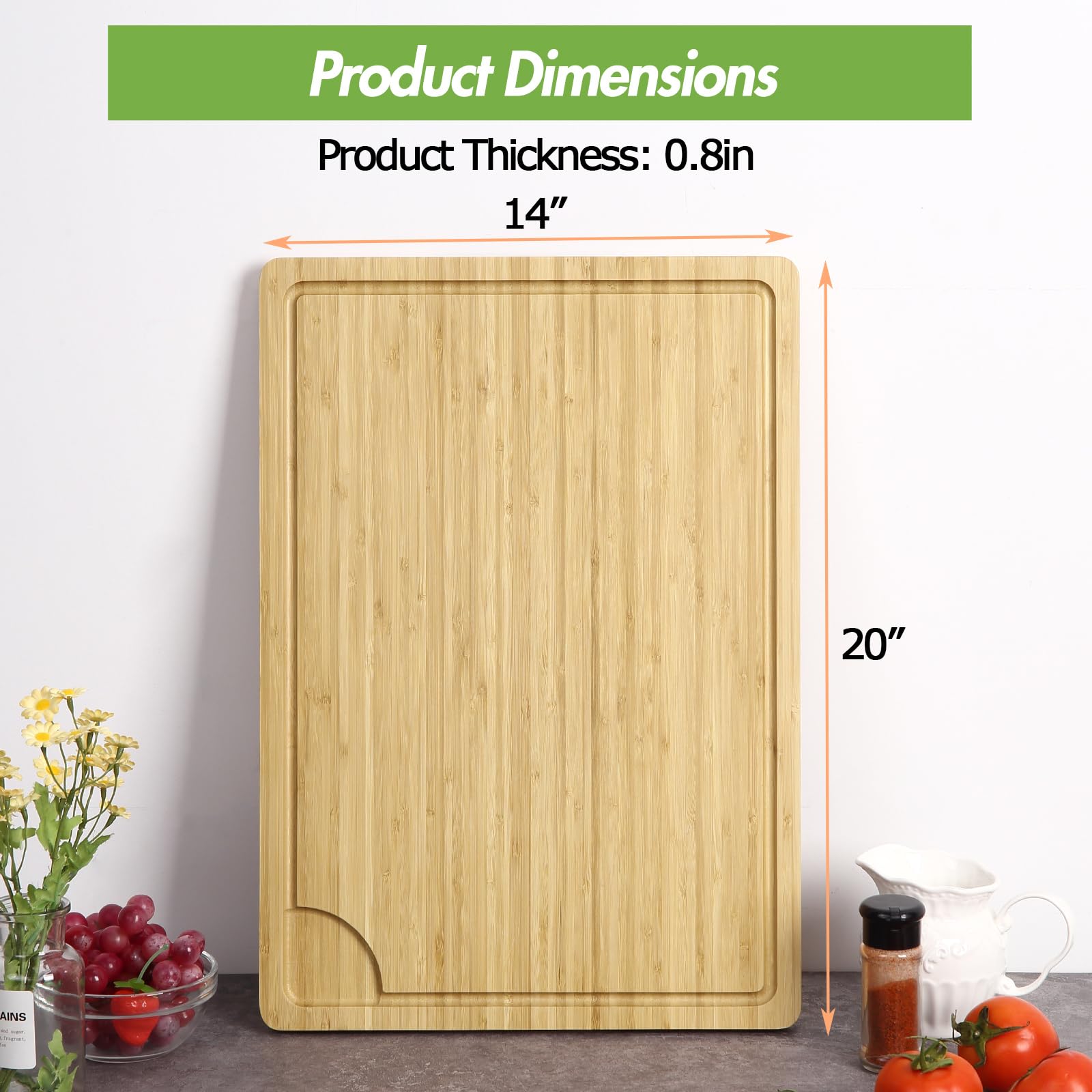 Koch-Begeisterte aufgepasst! Dieses extra große Bambus-Schneidebrett von SIMOORE revolutioniert deine Küchenarbeit. Verfügbar in drei praktischen Größen - 76,2x50,8cm, 61x45,7cm oder 50,8x35,6cm - alle mit satten 2cm Stärke für absolute Stabilität. Die umlaufende Saftrille ist der absolute Game-Changer: Sie fängt Fleisch-, Obst- und Gemüsesäfte zuverlässig auf und schützt so deine Arbeitsplatte und dein Kochfeld vor unschönen Flecken. Das dichte Bambusholz ist nicht nur super robust und langlebig, sondern auch besonders messerschonend - deine teuren Küchenmesser bleiben länger scharf. Die glatte Oberfläche fühlt sich einfach hochwertig an und ist absolut geschmacksneutral. Besonders clever: Das Brett kann auch als zusätzliche Arbeitsfläche oder als Abdeckung für dein Herdfeld dienen (aber Achtung - nur auf vollständig abgekühlten Herdplatten!). So gewinnst du in kleineren Küchen wertvollen Platz zurück. Ob du Fleisch schneidest, Gemüse hackst oder Brot aufschneidest - dieses Brett macht einfach alles mit. Die Pflege ist denkbar einfach: Handwäsche empfohlen, sofort trocknen und ab und zu mit lebensmittelechtem Öl behandeln, um die schöne Oberfläche zu erhalten. Ein echter Allrounder für Hobbyköche und Profis gleichermaßen - deine Küche wird dieses Upgrade lieben!