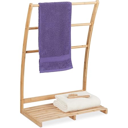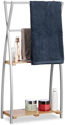 • Relaxdays Handtuchständer 75cm - Metall Mit Bambus Stangen Für Bad & Gäste-WC