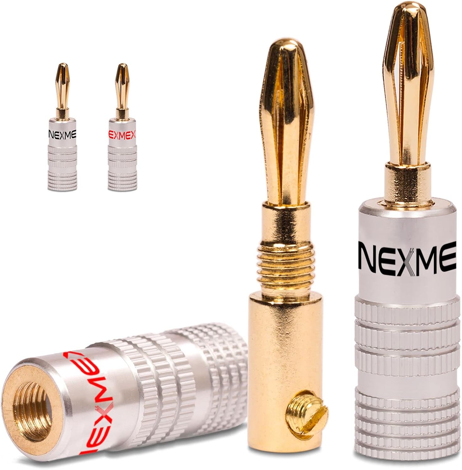 Diese Bananenstecker von Fosi Audio machen dein Audio-Setup richtig professionell! 4 Stück im Set - also genug für zwei Lautsprecher. Komplett vergoldet - das gibt beste Leitfähigkeit und verhindert Korrosion. Aus hochwertiger Aluminium-Legierung in Luftfahrtqualität - richtig stabil und langlebig. Per CNC gefräst - passt perfekt und sitzt bombenfest. Einfach die Lautsprecherkabel reinschrauben und in deinen Verstärker, Receiver oder Lautsprecher stecken - kein Gefummel mehr! Perfekt für Heimkino, Stereo-Anlagen oder Surround-Systeme. Macht den Anschluss nicht nur einfacher, sondern auch sicherer - keine losen Kabelenden mehr! Also, wenn du deine Audio-Anlage aufwerten willst oder einfach nur praktischere Anschlüsse brauchst - diese Bananenstecker sind genau das Richtige! Einfach einstecken und besseren Sound genießen!