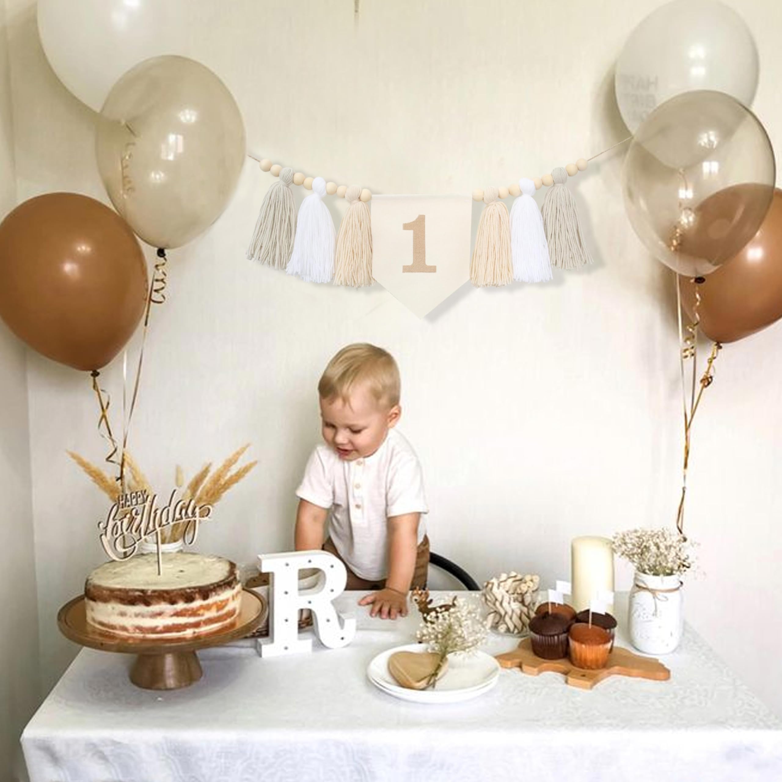 • Hochstuhl Banner Für 1. Geburtstag - Böhmisches Quastenbanner Mit Holzperlen | Party Dekoration Für Jungen & Mädchen