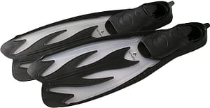 Diese Tecnopro Orca Flossen sind einfach mega bequem! Als Barfußflinsen konzipiert - du ziehst sie direkt ohne Neoprensocken an! Das Fußteil aus weichem Thermorubber liegt anatomisch perfekt an und ist hinten geschlossen für besseren Halt! Die praktische Anziehhilfe (kleine Gummilasche) macht das Anziehen super einfach - kein Gefummel mehr! Das Blatt aus hoch-elastischem Polypropylen gibt dir viel Power beim Schwimmen! Mit Strömungskanal für effizientere Bewegungen und Verstärkungen im Randbereich für mehr Stabilität! In transparenter Farbe und Größe 46 - sieht richtig clean aus! Kommt als 2er-Set - also beide Flossen dabei! Perfekt für Schnorcheln, Schwimmen, Tauchen oder Wassersport! Leicht und dennoch kraftvoll - macht jeden Wasserausflug zum Vergnügen! Einfach qualitativ hochwertige Flinsen, die richtig Spaß machen!
