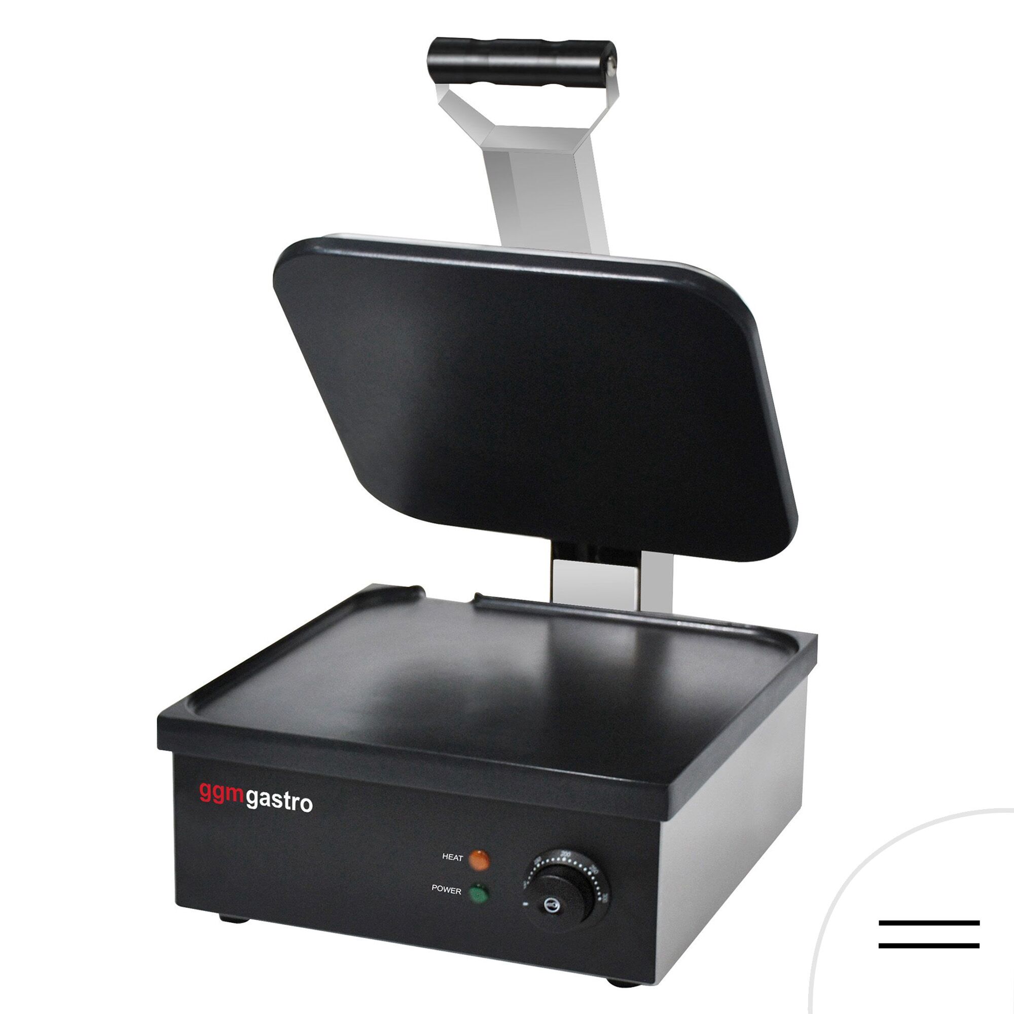 Der absolute Profi-Grill für deine Küche! Mit stolzen 2,2 kW Leistung macht dieser Elektrogrill richtig Dampf. Besonders praktisch: Die obere Grillplatte ist gerillt, die untere glatt - so bekommst du perfekte Grillstreifen auf Fleisch und Gemüse. Die riesige Grillfläche (335x220 mm oben, 335x230 mm unten) bietet Platz für mehrere Portionen gleichzeitig. Perfekt geeignet um Dönertaschen, Baguettes oder Sandwiches warm zu machen und zu grillen. Das robuste Gehäuse aus Chrom-Nickel-Stahl hält auch im täglichen Einsatz stand. Die Temperatur lässt sich stufenlos von 50 bis 300°C einstellen - ideal für schonendes Garen oder scharfes Anbraten. Mit praktischer Fettauffangschale und Reinigungsbürste inklusive. Maße: 41x37x20 cm, Gewicht 19 kg. Ob für die Gastronomie oder den privaten Gebrauch - dieser Grill meistert jede Herausforderung! Einfach einschalten, kurz aufheizen und schon kann's losgehen mit dem Grillvergnügen. Inklusive 2 Jahren Vollgarantie für sorgenfreies Grillen!