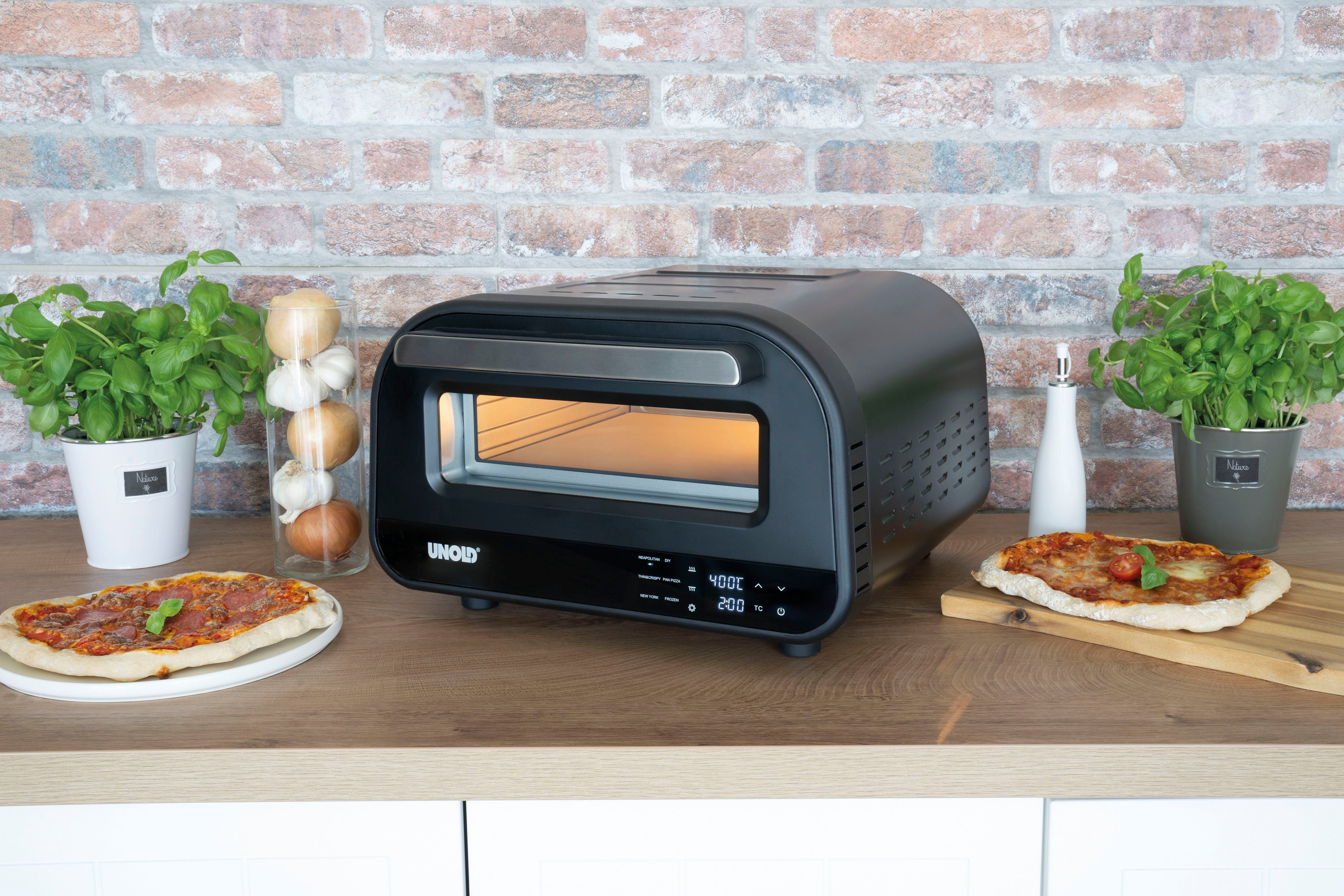Wow, dieser kompakte Pizzaofen ist einfach perfekt für dein Bistro, Imbiss oder deine Snackbar! Stell dir vor, du kannst hier knusprige Pizzen mit satten 40 cm Durchmesser backen - und das auf einem echten Steinboden. Besonders praktisch: Ober- und Unterhitze lassen sich separat schalten, sodass du die Temperatur genau steuern kannst. Von 50°C bis 350°C ist alles möglich - ideal für verschiedene Backwaren. Mit dem Sichtfenster behältst du deine Pizza immer im Blick, und der Timer sorgt für perfekte Ergebnisse. Bei 2 kW Leistung und den Maßen 565 x 585 x 265 mm findet dieser Ofen auch in kleineren Küchen Platz. Ein echter Profi-Ofen für alle, die leckere Pizzen zaubern wollen!