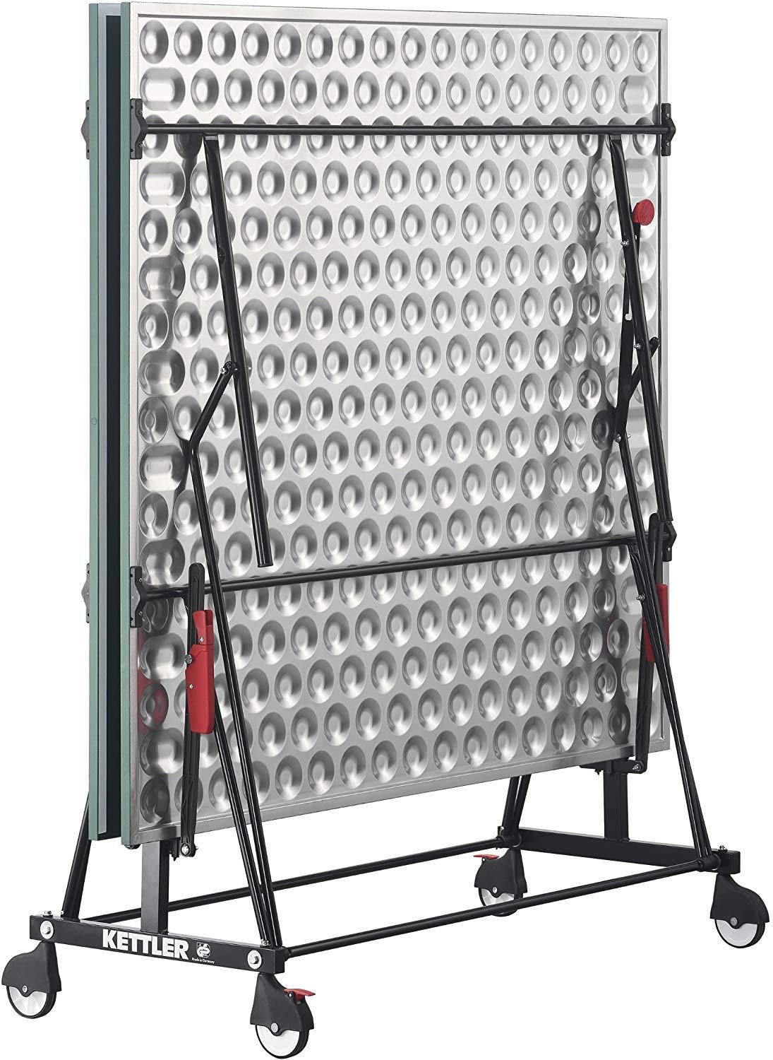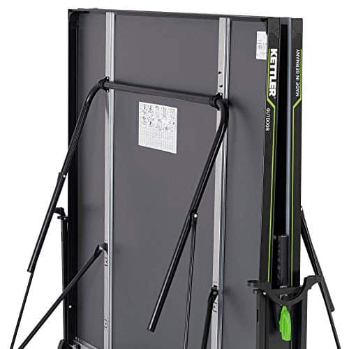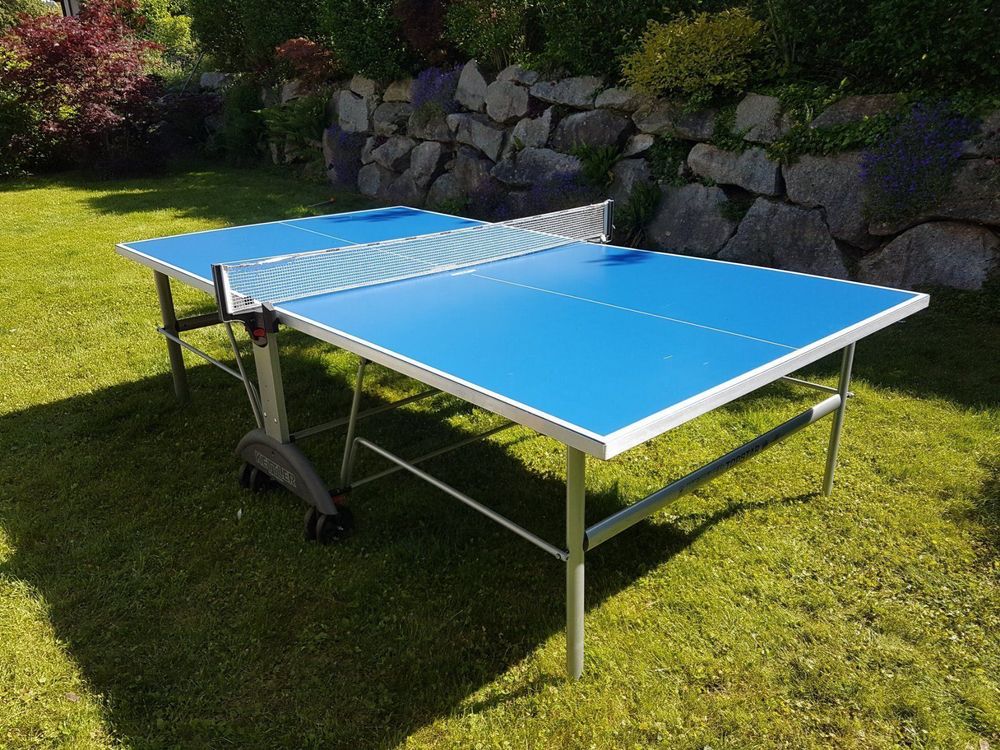 Perfekt für den Garten! Diese KETTLER Tischtennisplatte ist genau das Richtige für alle, die gerne mal eine Runde Tischtennis im Freien spielen wollen. Die Platte ist super praktisch - sie lässt sich einfach zusammenklappen und hat Rollen, damit du sie leicht verschieben kannst. Die Aluminium-Verbundplatte ist absolut wetterfest, da macht ihr Regen oder Sonne nichts aus. Der stabile Stahlrahmen gibt dir das nötige Standgefühl, und die höhenverstellbaren Beine sorgen dafür, dass die Platte auch auf unebenen Böden perfekt steht. Mit den vier Doppelrollen (125mm) und Bremsen kannst du sie einfach an den gewünschten Platz schieben und dort fixieren. Wenn du mal keinen Platz brauchst, klappst du sie einfach zusammen und stellst sie platzsparend weg. Egal ob für Familien-Spielnachmittage oder regelmäßige Trainings - diese Platte hält was aus und macht richtig Spaß!