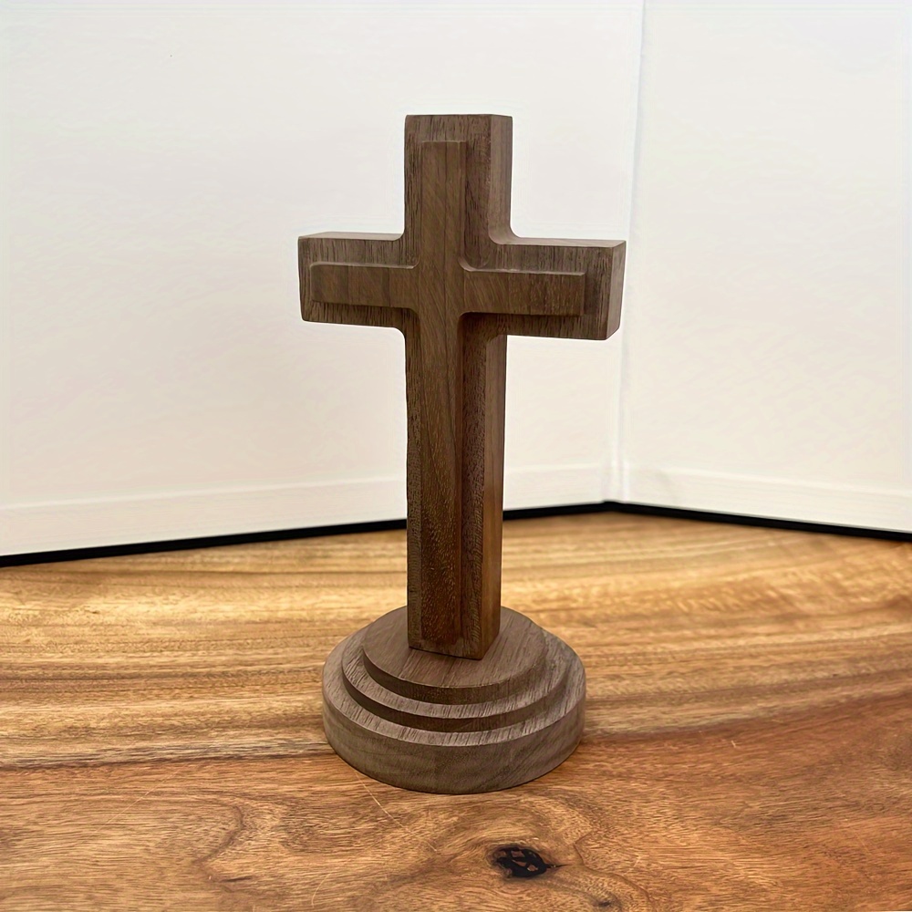 Dieses wunderschön handgefertigte Holzkreuz bringt Ruhe und Spiritualität in dein Zuhause. Mit 10,5cm Höhe, 7,3cm Breite und 0,3cm Stärke ist es perfekt für den Schreibtisch, Nachttisch oder Regal. Das Diamantkanten-Design gibt ihm eine besondere Eleganz. Aus hochwertigem Naturholz in warmer Holzfarbe. Mit stabiler Basis steht es sicher auf jeder Oberfläche. Fein ausgeschnitten mit liebevollen Details. Ideal als Ostergeschenk, für Taufen oder einfach als Zeichen des Glaubens. Auch nicht-gläubige schätzen die künstlerische Handwerkskunst. Ein zeitloses Stück das über Jahre Freude bereitet. Perfekt für Wohnzimmer, Büro oder als besonderes Geschenk für liebe Menschen.