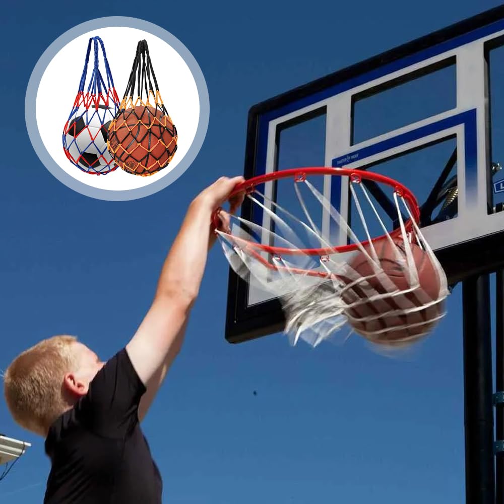 Diese beiden praktischen Ballnetze sind die perfekte Lösung für den Transport deiner Sportbälle! Aus robustem Nylon gefertigt und in auffälligem Rot-Weiß, damit du sie auf dem Sportplatz nicht verlierst. Jedes Netz fasst bis zu 10 Bälle - perfekt für Basketball, Fußball, Volleyball oder andere Ballsportarten. Der geflochtene Griff liegt super in der Hand und schont deine Finger. Einfach zu benutzen: Einfach die Bälle reinwerfen, Kordelzug zuziehen und los geht's! Wenn du es nicht brauchst, lässt es sich platzsparend zusammenfalten. Inklusive 2 Ballnadeln zum Reparieren. Ideal für Training, Schule oder Verein. Nie wieder Bälle mühsam tragen - mit diesen Netzen hast du alles bequem dabei!