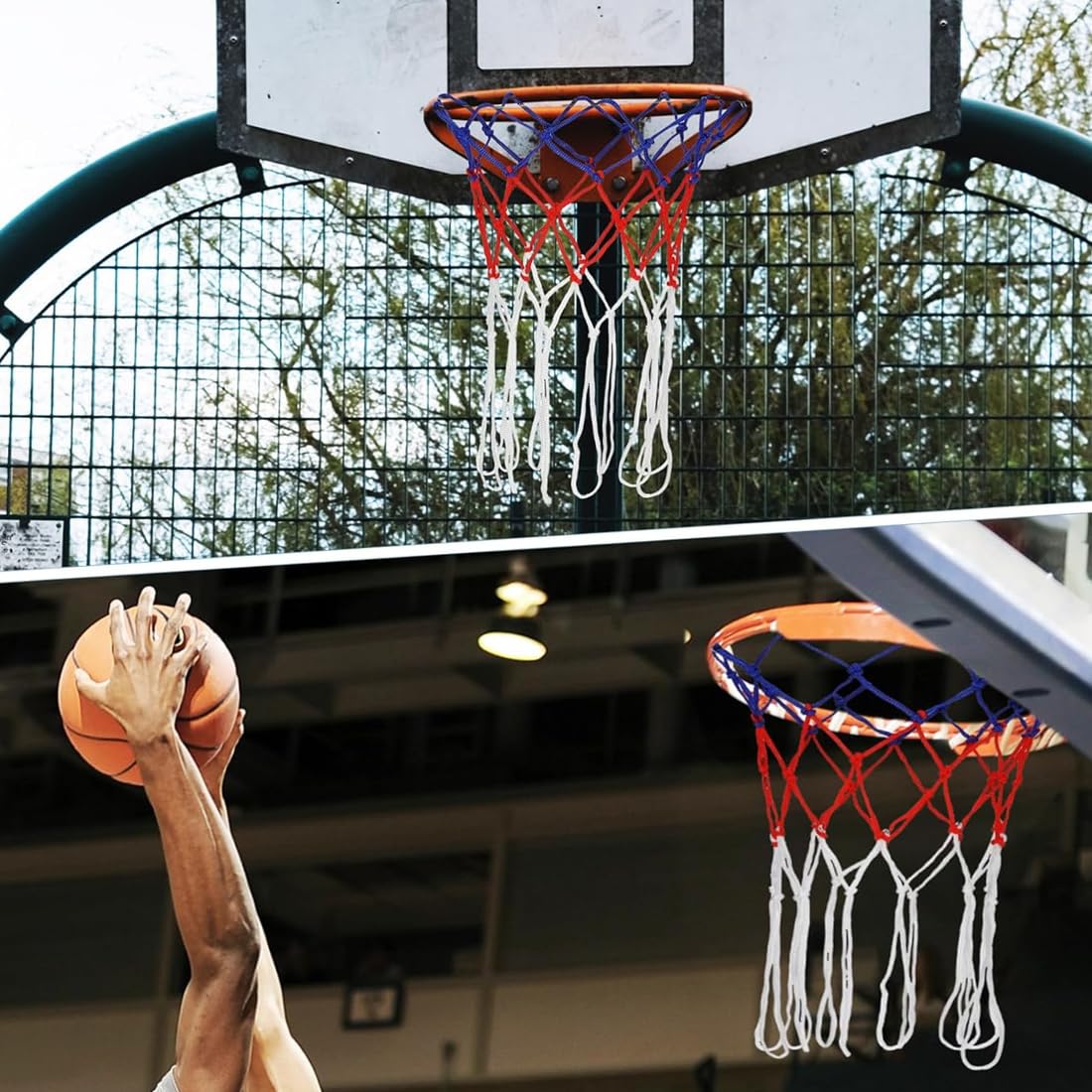 Dieses Basketballnetz bringt wieder den echten 'Swish'-Sound zurück auf deinen Court! Mit 12 Schlaufen passt es perfekt auf jeden Standard-Basketballkorb und ist super einfach zu montieren - einfach die alten Schlaufen abziehen und die neuen draufstecken.
