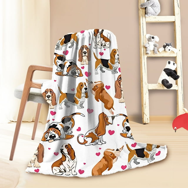 Total kuschelig und mega süß! Diese Basset Hound Decke aus weichem Anti-Pilling-Flanell ist der perfekte Begleiter für gemütliche Stunden. Mit 127x152 cm groß genug fürs Sofa, Bett oder als Picknickdecke. Auf einer Seite das niedliche Basset Hound Motiv, auf der anderen Seite schlichtes Weiß. Hält schön warm ohne zu überhitzen - ideal für alle Jahreszeiten. Absolut pflegeleicht: Maschinenwäsche bei 30°C, im Trockner bei niedriger Temperatur. Verblasst nicht und pillt nicht. Perfekt als Geschenk für Hundeliebhaber, zur Babyparty oder einfach für dich selbst. Schützt deine Möbel vor Schmutz und macht jeden Raum gemütlicher. Ob beim Fernsehen, Lesen oder Camping - diese Decke wird dein neuer Liebling!