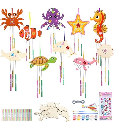 Halloween steht vor der Tür? Mit diesem mega Bastelset machst du dein Zuhause gruselig schön! Enthalten sind 10 unfertige Holzfiguren mit Halloween-Motiven wie Kürbisse, Geister, Hexen und Fledermäuse. Dazu 30 bunte Klangröhren in Grün, Rot, Gelb und Blau, 30 Silberdrähte, 10 farbige Baumwollseile, 2 Pinsel und glitzernde Strasssteine. Die Holzfiguren sind super glatt geschliffen - keine Splitter, perfekt für Kinderhände. Einfach mit Aquarell- oder Acrylfarben bemalen und mit den Stickern verzieren. Wenn der Wind weht, erklingen die Röhren wunderbar mystisch. Perfekt für Kindergeburtstage, Bastelnachmittage oder als Deko für die Halloween-Party. Fördert die Kreativität und Feinmotorik - und macht einfach Riesenspaß! Das Set hält auch Wind und Wetter stand, also kannst du die Windspiele draußen aufhängen.