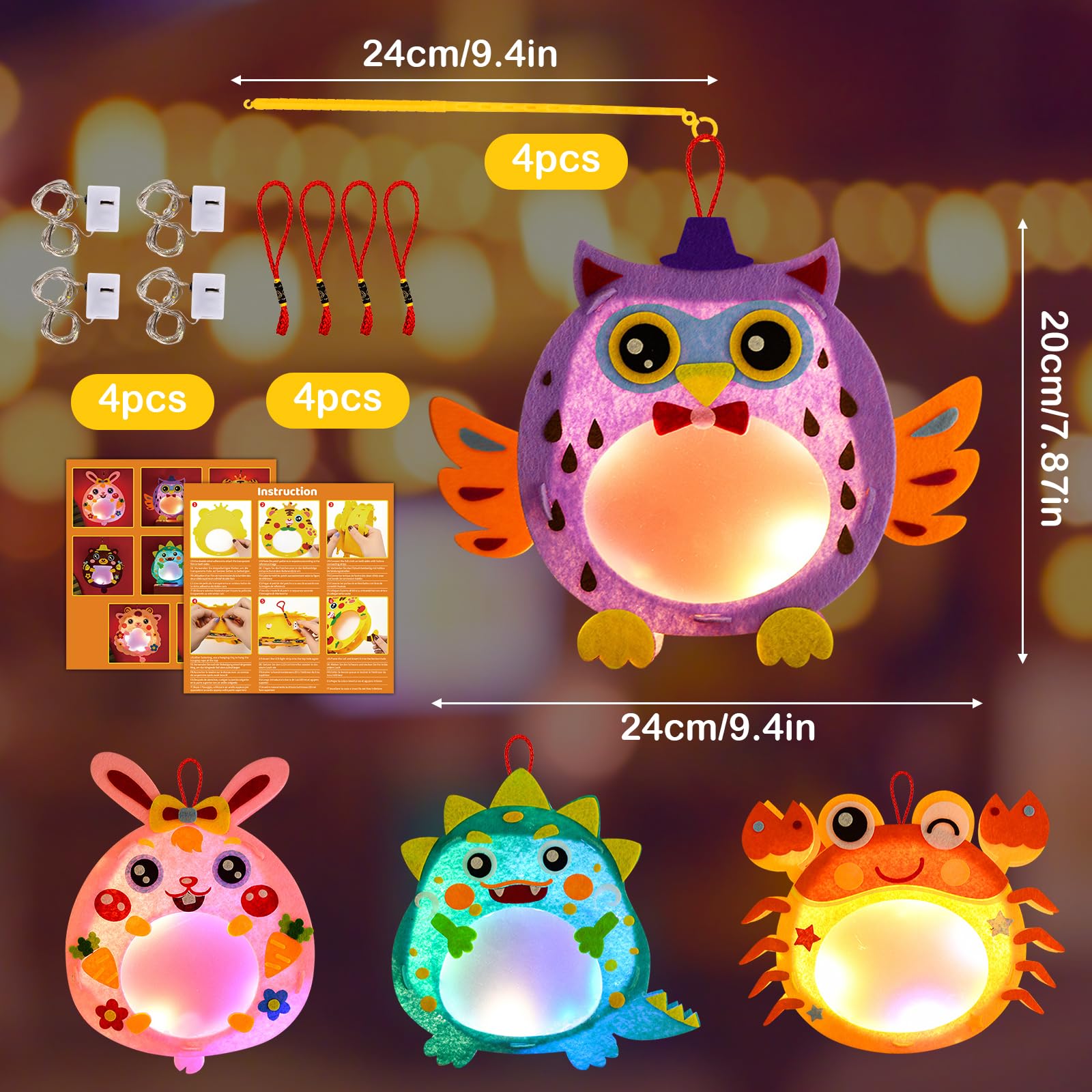 Im Set sind 4 verschiedene Tiermotive dabei: Eule, Kaninchen, Hirsch und Bär. Alles aus weichem Filz-Material, das reißfest und absolut unbedenklich für Kinder ist. Die Laternen werden etwa 24 x 20 cm groß - perfekt für kleine Hände!