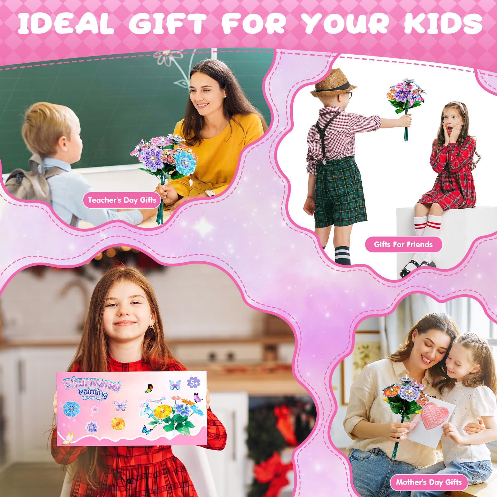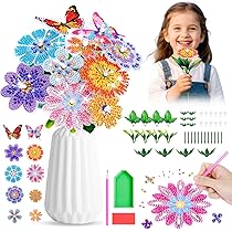 Mega süßes Diamond Painting Set für kreative Mädchen! Mit 10 verschiedenen Blumen und Schmetterlingen zum Selberbasteln. Alles dabei: Diamanten, Blumen, Blätter, Stiele und Werkzeug - einfach loslegen und wunderschöne Blumensträuße gestalten! Fördert die Kreativität, Feinmotorik und Konzentration deines Kindes. Perfekt für Mädchen ab 5 Jahren, aber auch größere Kinder haben noch Spaß daran. Aus sicheren, umweltfreundlichen Materialien - keine scharfen Kanten, keine Giftstoffe. Super als Geschenk für Geburtstage, Weihnachten oder einfach so! Die funkelnden Diamanten machen jede Blume zum kleinen Kunstwerk. Mach dein Kind glücklich mit diesem kreativen Bastelspaß!