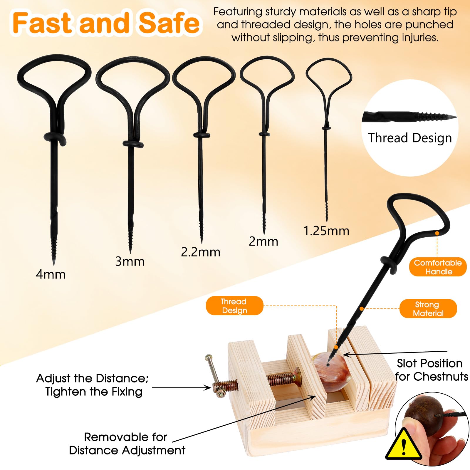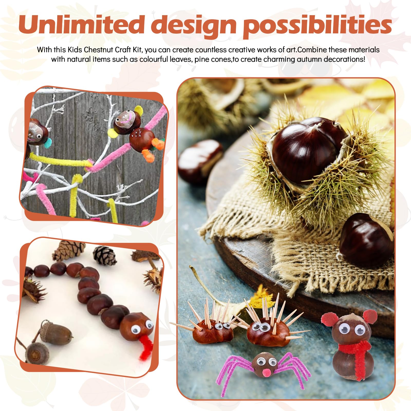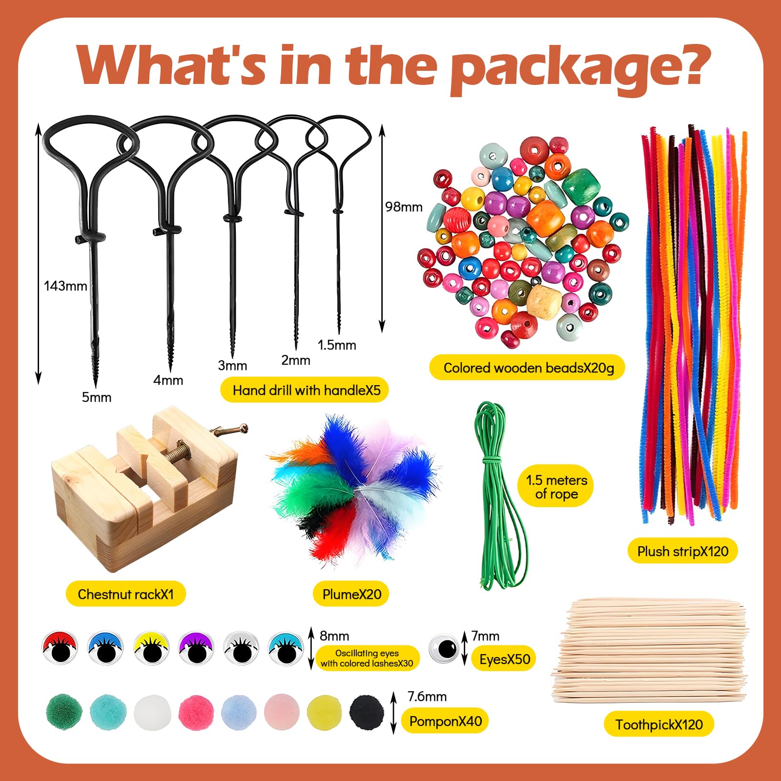 Total süßes Bastelset für Kastanienfiguren! Enthält alles für kreativen Herbstspaß: 1 Kastanienhalter, 5 Handbohrer (1,5-5mm), Federn, Pompons, Wackelaugen, Pfeifenreiniger, Holzzahnstocher, Holzperlen und Schnur. Aus rostfreiem Metall - langlebig und sicher. Fördert die Kreativität und Feinmotorik der Kinder. Perfekt für Familienzeit an Herbsttagen. Einfach Kastanien sammeln und losbasteln! Erstelle niedliche Kastanienmännchen, Tiere oder bunte Herbstketten. Macht riesig Spaß und die Ergebnisse sind wunderbare Herbstdekorationen!