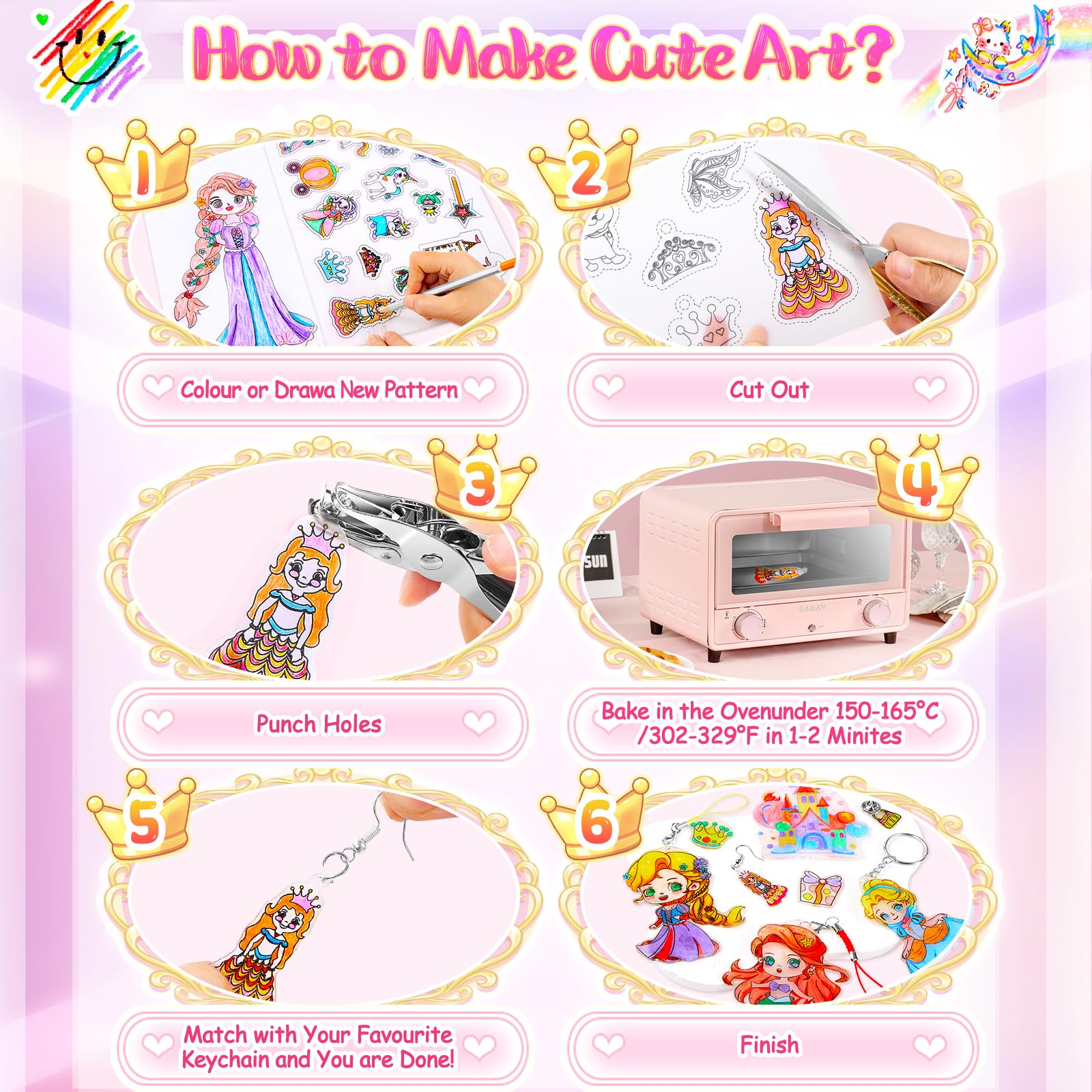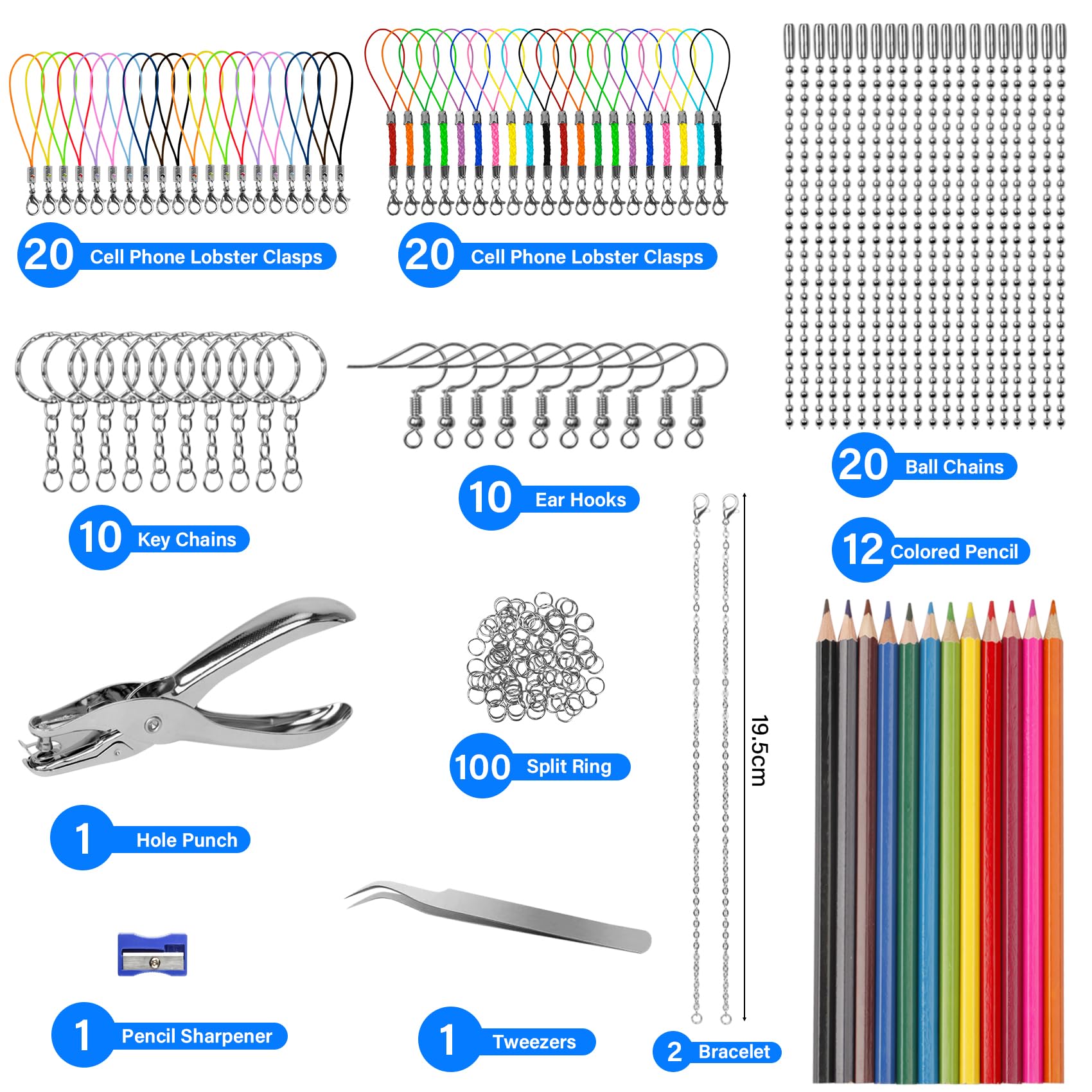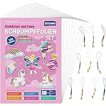 Wow, was für ein umfangreiches Bastelset! Da sind 218 Teile drin: 10 Bögen durchsichtiges Schrumpfpapier (A4), 5 Bögen bunte Folie mit Mustern (A5), 12 Buntstifte, 10 Schlüsselringe, 1 Locher, 20 Perlenketten, 20 Ohrhaken, 20 Karabiner, 110 kleine Ringe und 10 Stecknadeln - also alles was du brauchst! Einfach auf die matte Seite malen, ausschneiden, Loch reinmachen und bei 160°C für 2 Minuten backen - schon schrumpft es auf 1/3 der Größe! Super für Schlüsselanhänger, Ohrringe, Anhänger - der Kreativität sind keine Grenzen gesetzt. Fördert Feinmotorik und Konzentration bei Kindern. Perfekt für Kindergeburtstage, Regentage oder einfach mal kreativ sein! Einfach loslegen und staunen was dabei rauskommt!