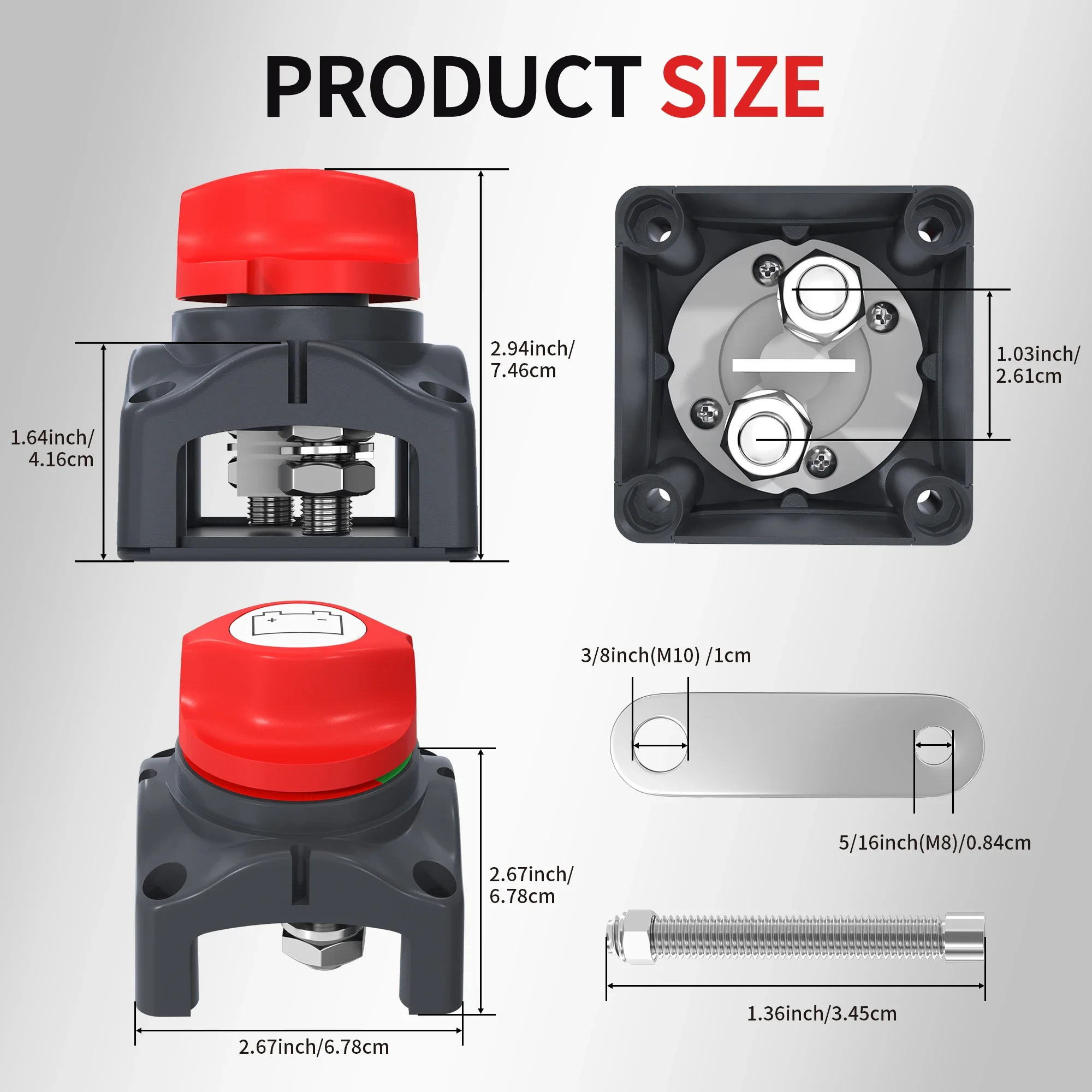 Dieser Batterietrennschalter von vsshe ist ein echter Allrounder für alle, die ihre Batterie sicher trennen wollen! Mit einem Spannungsbereich von 12V bis 48V ist er vielseitig einsetzbar - ob im Auto, Boot, Wohnwagen oder LKW. Aus reinem Messing und robustem Kunststoff gefertigt, ist er nicht nur langlebig, sondern auch korrosionsbeständig. Das wasserdichte Design schützt zuverlässig vor Feuchtigkeit und verhindert so ungewollte Entladungen. Die Installation ist denkbar einfach: Einfach direkt am Minuspol der Batterie befestigen - keine zusätzlichen Kabel oder Klemmen nötig! Perfekt also, um die Batterie vor Überentladung zu schützen oder im Notfall schnell die Stromversorgung zu unterbrechen. Besonders praktisch für Fahrzeuge, die längere Zeit stehen - so geht garantiert kein Saft verloren. Der rote Kunststoffkörper ist gut sichtbar, und die kompakten Maße (13,5x3,5x4,6cm) passen fast überall. Ein unverzichtbares Teil für jeden, der Wert auf Sicherheit und Batteriepflege legt! Einfach umdrehen und schon ist der Stromkreis unterbrochen - praktischer geht's kaum.