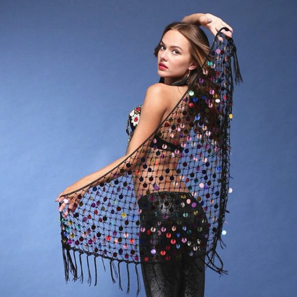 Wunderschönes Bauchtanz-Hüfttuch für alle Tanzbegeisterten! Dieses elegante Hüfttuch kombiniert traditionelles Flair mit modernem Chic. Der leichte Chiffon-Stoff ist mit funkelnden Pailletten besetzt die in fransigen Streifen angeordnet sind. Mit 139cm Taillenlänge und 83cm Höhe passt es für Damen von 40-70kg - also für die meisten Größen ideal. Perfekt nicht nur für Bauchtanz, sondern auch für Rumba, Samba, Chacha und andere Tanzstile. Die fröhlichen Quasten und glänzenden Pailletten verleihen jedem Tanz-Outfit einen funkelnden Akzent und betonen die Hüftbewegungen wunderbar. Gibt volle Bewegungsfreiheit und macht jede Tanzperformance zum echten Hingucker. Einfach um die Hüfte binden und sich wie eine echte Bauchtänzerin fühlen - ob für die Bühne, Tanzkurs oder einfach nur für Spaß zuhause!
