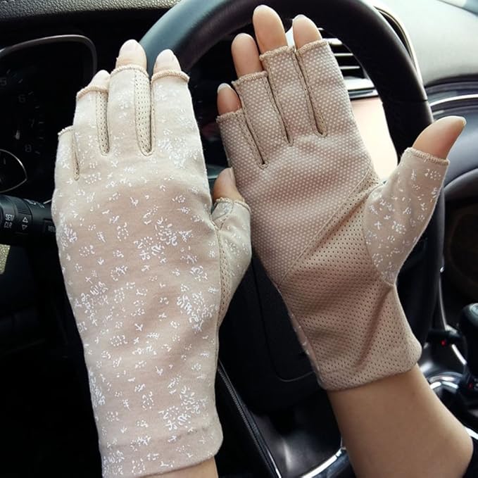 Perfekter Griff und Sonnenschutz für aktive Frauen! Diese halbfingerigen Fahrradhandschuhe aus weicher Baumwolle sind deine idealen Begleiter für Outdoor-Aktivitäten. Mit 20cm Länge und 8-9cm Handflächenbreite passen sie perfekt und sind super bequem. Das fingerlose Design gibt dir maximale Bewegungsfreiheit - ideal zum Bedienen von Smartphones oder zum Greifen kleiner Gegenstände. Die cleveren Anti-Rutsch-Punkte auf der Handfläche sorgen für perfekten Halt am Lenker - ob beim Radfahren, Motorrad fahren oder Autofahren. Gleichzeitig schützen sie deine Hände vor Sonne und Scheuerstellen. Atmungsaktiv und hautfreundlich - selbst an heißen Tagen bleibt deine Hand cool und trocken. Ob für Camping, Angeln, Wandern, Golf oder Tennis - diese vielseitigen Handschuhe sind immer die richtige Wahl! In schwarz, grau und braun erhältlich.