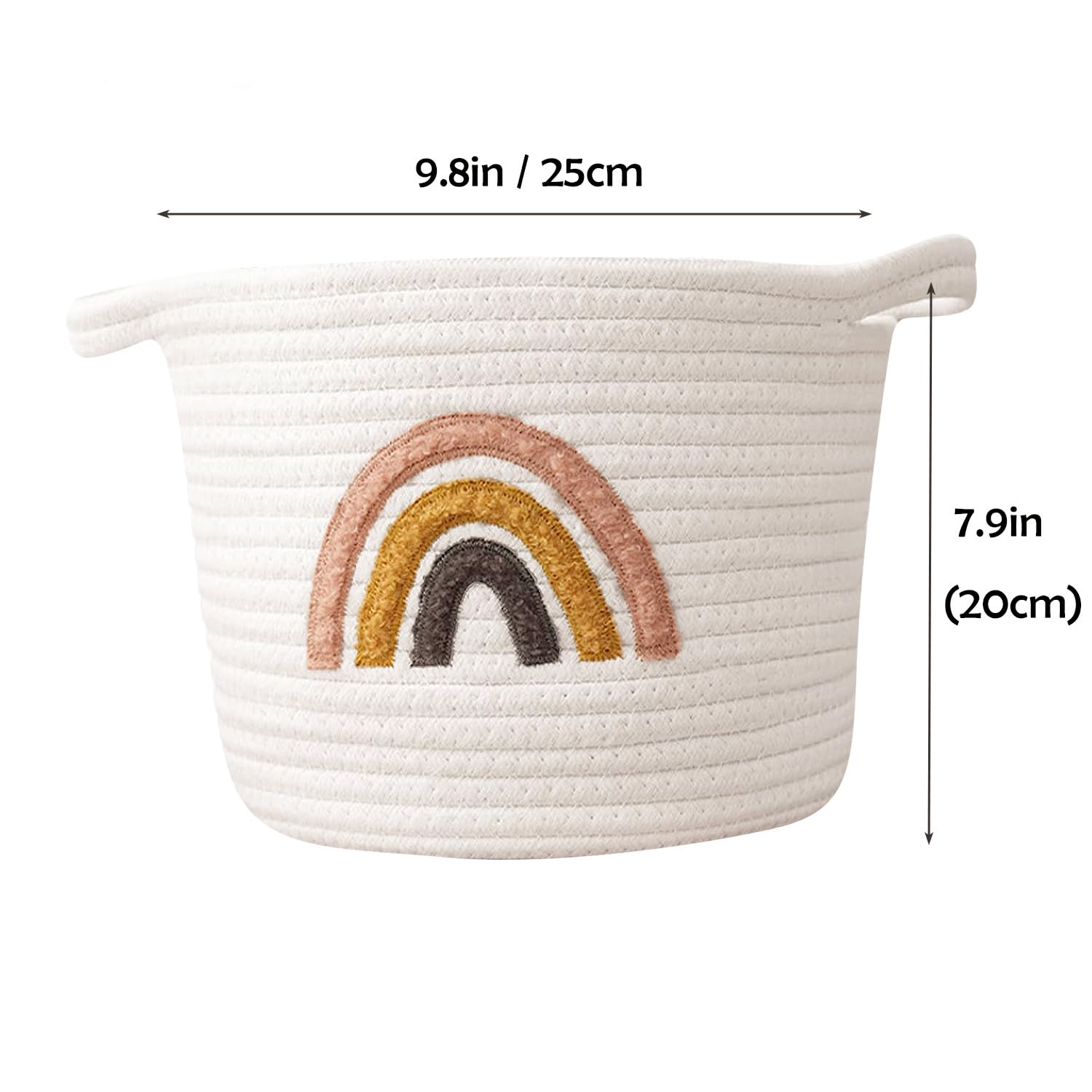 Ordnung muss nicht langweilig sein! Dieser süße Aufbewahrungskorb aus gewebtem Baumwollseil im Regenbogen-Design bringt Farbe in dein Zuhause. Mit 25 cm Durchmesser und 20 cm Höhe perfekt für Spielzeug, Kleidung, Handtücher, Make-up oder Accessoires. Aus natürlichem, hautfreundlichem Baumwollseil - komplett umweltfreundlich und sicher für Kinder. Weich und ohne scharfe Kanten, daher ideal fürs Kinderzimmer. Und das Beste: Er ist faltbar! Wenn du ihn nicht brauchst, einfach zusammenfalten und platzsparend verstauen. Leicht zu reinigen - einfach mit feuchtem Tuch abwischen. Macht sich super im Regal, Schrank oder auf dem Nachttisch. Ob als praktischer Organizer oder als hübsche Deko - dieser Korb ist vielseitig einsetzbar und bringt sofort mehr Ordnung und Gemütlichkeit in deine vier Wände. Ein ideales Geschenk für Baby-Partys, Einweihungen oder einfach für dich selbst!