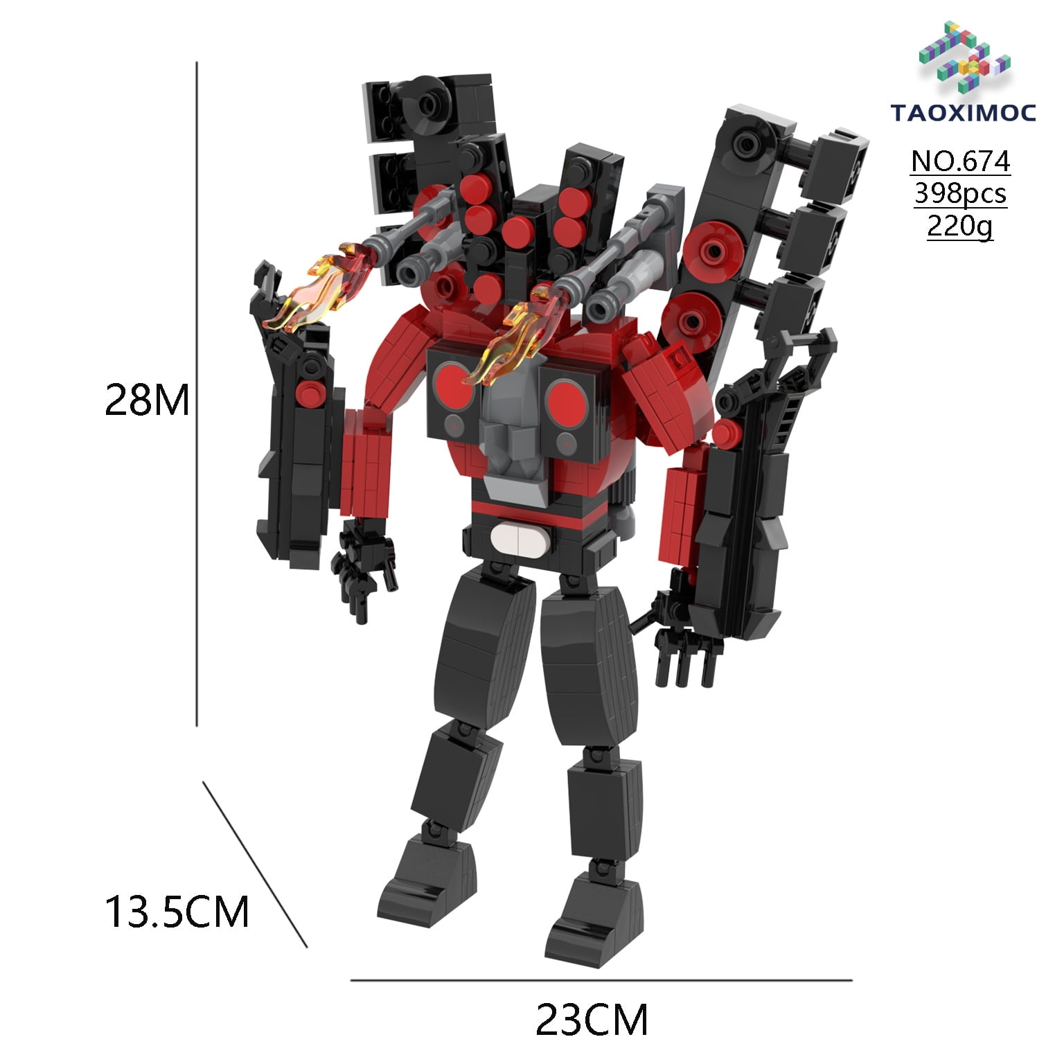 Skibidi Toilet Fans, hier kommt euer neues Lieblingsspielzeug! Diese mega coole Titan Bausteine-Figur bringt die beliebte TV Man Figur direkt in euer Kinderzimmer. Mit über 400 Teilen wird das Zusammenbauen zum echten Abenteuer!\n\nDas Set wiegt stolze 1,2 kg und ist aus sicherem ABS-Material gefertigt - also absolut unbedenklich für Kinder. Die Inspiration kommt direkt aus den Horror-Spielen, die ihr liebt, und die Details sind einfach nur krass genau getroffen!\n\nIn der Verpackung findet ihr alles, was ihr braucht: Die Bausteine für den Titan Clock Mann plus coole Accessoires wie Schlachtaxt, Hammer und Schild. So kann die Action gleich richtig losgehen!\n\nDas Tolle daran: Die Schritt-für-Schritt-Anleitung macht das Zusammenbauen super einfach. Selbst wenn ihr noch nicht so viel Erfahrung mit Bausteinen habt, kriegt ihr das hin! Und nebenbei trainiert ihr noch eure Hand-Auge-Koordination und Kreativität.\n\nPerfekt für Jugendliche ab 15 Jahren, aber auch jüngere Kids mit etwas Hilfe können hier voll auf ihre Kosten kommen. Ob im Wohnzimmer, im Kinderzimmer oder auf dem Schreibtisch - diese Figur sieht überall cool aus!\n\nIdeal als Geschenk für Geburtstage, Weihnachten oder einfach so. Jeder Skibidi Toilet Fan wird aus dem Häuschen sein! Die Figur hat nicht nur einen hohen Spaßfaktor beim Bauen, sondern sieht auch später als Deko mega aus.\n\nAlso worauf wartet ihr noch? Holt euch diesen absoluten Hingucker und baut euren eigenen Titan TV Man! Das wird garantiert ein Riesenspaß für alle Baustein- und Skibidi-Fans.