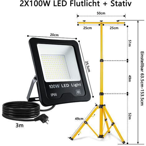 Suchst du eine helle, zuverlässige Beleuchtung für Baustelle, Garage oder Werkstatt? Dieser LED Baustrahler von Monucep mit 2x100W und 10000 Lumen ist ein echter Kraftprotz! Mit 144 LEDs pro Strahler erzeugt er blendfreies, kaltweißes Licht (6000K) mit 120° Abstrahlwinkel - perfekt um große Flächen gleichmäßig auszuleuchten. Die Leuchte ist aus robustem Aluminiumdruckguss und schlagfestem PC-Material gefertigt, mit IP66 Schutz gegen Staub und starken Wasserstrahl. Das praktische faltbare Stativ ist von 0-180° neigbar und gibt dir maximale Flexibilität. Mit 3m Kabel (EU-Stecker) und Tragegriff ist die Leuchte einfach zu transportieren und zu positionieren. Energieeffizient und langlebig (bis zu 50.000 Betriebsstunden) spart sie dir Stromkosten im Vergleich zu Halogenleuchten. Ideal für Handwerker, Heimwerker, Camping oder Autoreparaturen - wo immer du helles Licht brauchst!
