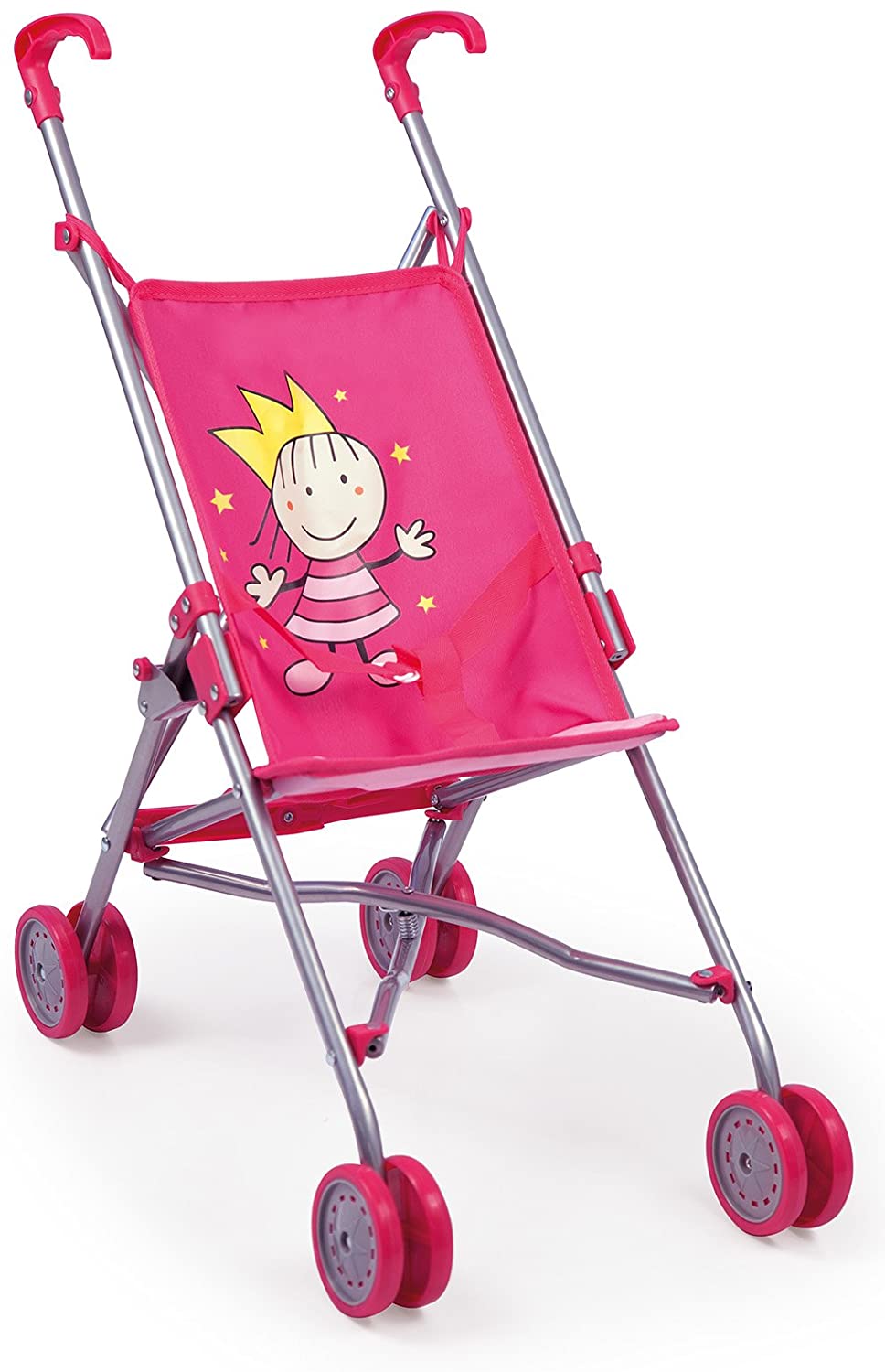 Total süßer Puppenbuggy für alle kleinen Puppenmamas! In knalligem Pink mit Prinzessinnen-Motiv - da strahlt jedes Kinderherz. Der stabile Metallbuggy hat coole Doppelräder, die super leicht laufen. Mit praktischem Sicherheitsgurt, damit die Lieblingspuppe sicher angeschnallt ist. Passt perfekt für Puppen bis 46cm Größe. Und das Beste: lässt sich einfach zusammenklappen für unterwegs oder platzsparende Aufbewahrung. Maße: 51x27x55cm, Schiebehöhe 55cm - ideal für Kinder ab 3 Jahren. Fördert kreatives Rollenspiel und macht einfach Spaß! Bayer Design steht für qualitativ hochwertiges Spielzeug, das lange hält. Perfekt als Geschenk für kleine Mütter oder zum Verkleiden und Spielen.