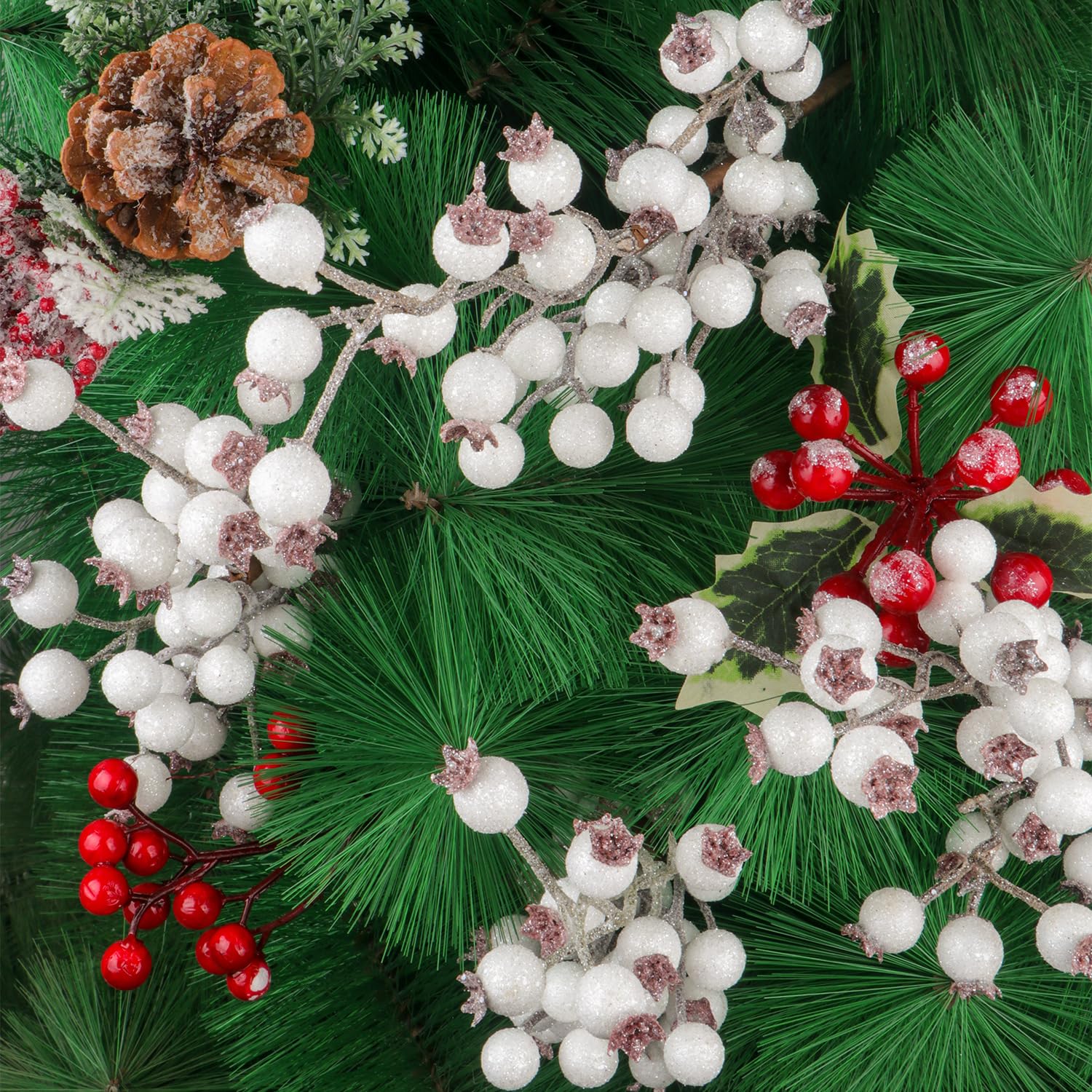 Mach dein Zuhause weihnachtlich mit diesen wunderschönen weißen Beerenstielen! Im Set bekommst du 6 Stück, jeder etwa 35 cm lang mit Beeren von ca. 1,8 cm Durchmesser. Die Zweige sehen täuschend echt aus und bringen sofort festliche Stimmung in deine Wohnung. Hergestellt aus hochwertiger Seide, Eisendraht und Schaumstoffkugeln, sind sie mit zartem Glitzer überzogen - einfach magisch! Der Innendraht macht die Stiele biegbar, sodass du sie ganz nach deinen Wünschen formen kannst. Perfekt für Weihnachtsbäume, Kränze, Girlanden oder Tischdekorationen. Ob für die Feiertagstafel, den Kamin oder als DIY-Bastelprojekt - diese Beeren machen überall eine gute Figur. Sie sind wiederverwendbar und behalten auch nach Jahren noch ihr schönes Aussehen. Einfach in deine vorhandene Deko integrieren oder damit ganz neue Arrangements gestalten. Die weiße Farbe passt zu jedem Einrichtungsstil und kombiniert sich gut mit anderen Weihnachtsfarben. Verwandele dein Zuhause in eine winterliche Wunderland!