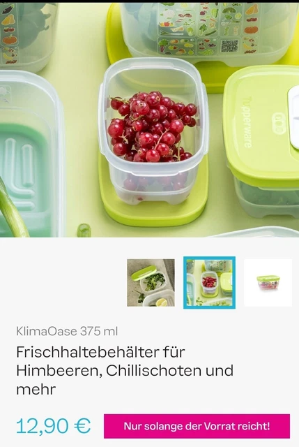 Boah, diese Tupperware KlimaOase ist ja mal der absolute Klassiker für deine Küche! Mit 1,6 Liter Fassungsvermögen (oder 6100ml) und den Maßen 38x18,5x14cm passt da ganz schön viel rein. Das geniale System mit den Rillen im Boden sorgt dafür, dass deine Lebensmittel nicht in der Feuchtigkeit liegen - Obst, Gemüse und Co. bleiben so viel länger frisch. Der aromadichte Verschluss verhindert Geruchsbildung und mit der Belüftungsmöglichkeit kannst du die Luftzirkulation regulieren. Spülmaschinenfest und aus hochwertigen Materialien - das Teil hält ewig! Die lila Farbe sieht dabei auch noch richtig stylisch aus. Tupperware Qualität made in Germany - da weißt du einfach, dass du was Gutes in der Hand hast. Perfekt für Vorratskammer, Kühlschrank oder zum Mitnehmen von Snacks!