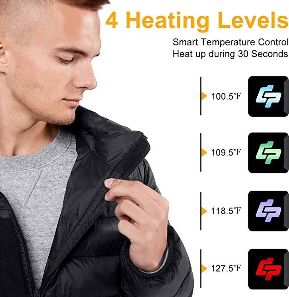 Eiskalt? Nicht mit dieser Jacke! Die beheizbare Herrenjacke mit Kapuze hält dich auch bei frostigen Temperaturen richtig warm. Mit 3 Temperaturstufen regulierst du die Wärme genau nach Bedarf. Wichtig: Powerbank ist nicht dabei - aber du kannst einfach deine Handy-Powerbank anschließen! Perfekt für Motorradfahrer, Angler oder alle Outdoor-Aktivitäten im Winter. Selbst ohne Heizung ist sie ne super Winterjacke. Achtung: Asiatische Größen - besser vorher genau messen! Die 9 Heizzonen sorgen für gleichmäßige Wärmeverteilung. Ob Skifahren, Camping oder Jagd - mit dieser Jacke frierst du nicht mehr. Einfach USB-Kabel einstecken und los geht's. Praktisch: Sie ist nicht zu dick, sodass du dich trotzdem gut bewegen kannst. Endlich Winter ohne Zittern!