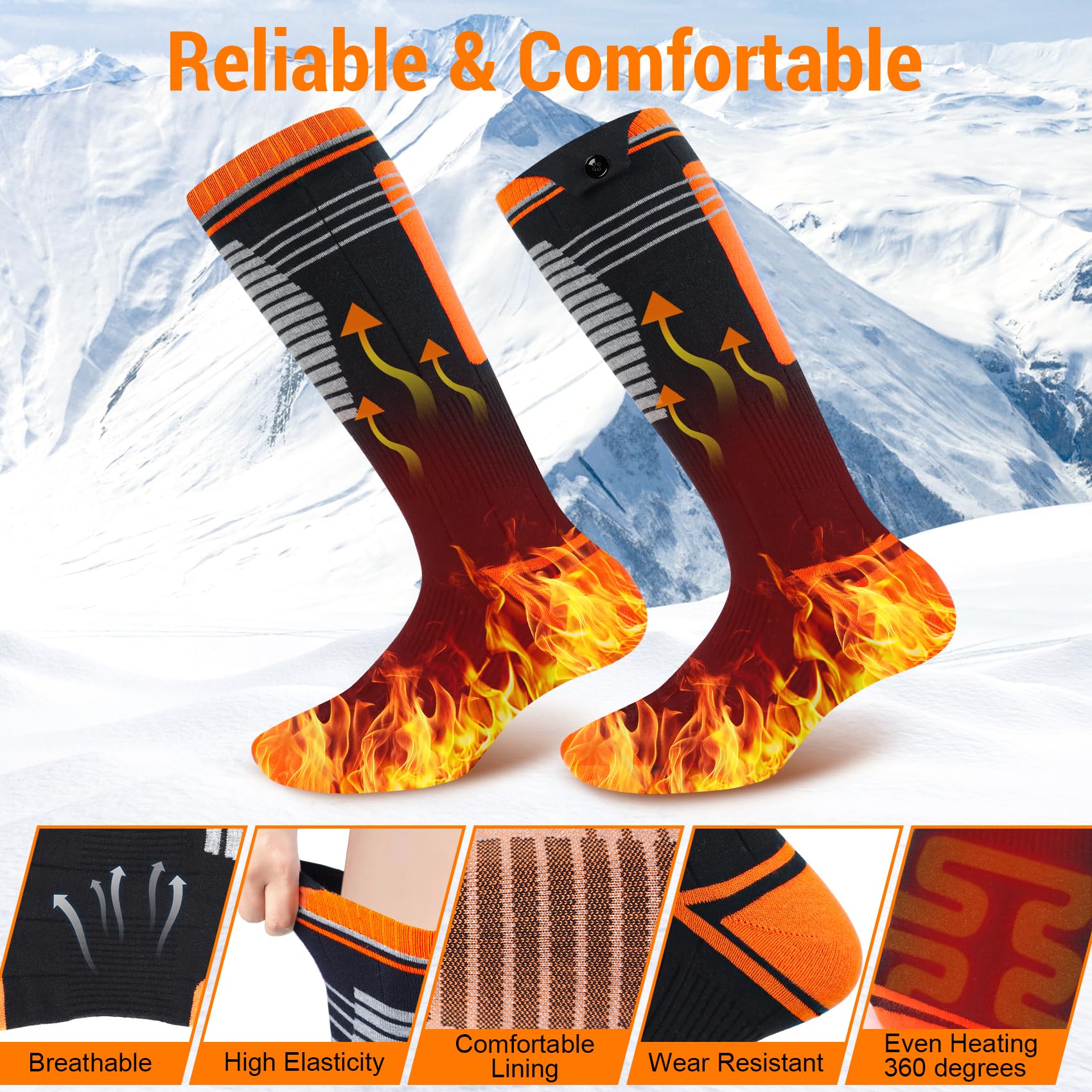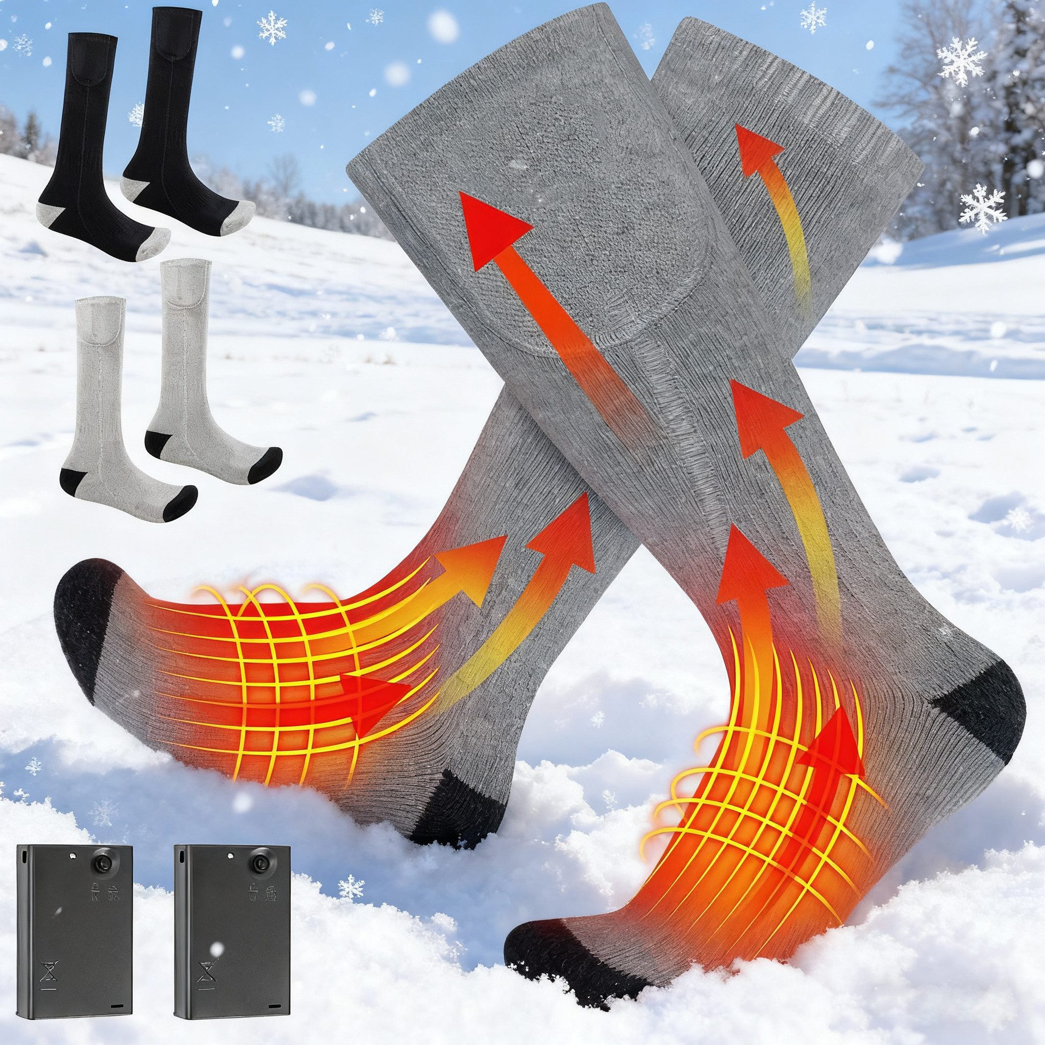 Eiskalte Füße im Winter? Vergiss das mit diesen beheizbaren Socken! Der 7000mAh Akku hält bis zu 10 Stunden warm - perfekt für lange Outdoor-Abenteuer. Mit 4 Heizstufen bis 65°C findest du immer die richtige Temperatur. Das neue Vollfuß-Heizsystem wärmt Zehen und Fußsohlen gleichmäßig, 30% mehr Heizfläche als frühere Modelle! Die Universalgröße passt für Damen und Herren von EU 36-43. Ob beim Skifahren, Wandern, Angeln oder einfach nur beim Spaziergang im Winter - deine Füße bleiben kuschelig warm. Besonders praktisch für Menschen mit Durchblutungsstörungen oder Arthritis. Die Socken sind maschinenwaschbar (inklusive Wäschesack) und bieten 60 Tage Rückgaberecht plus 1 Jahr Garantie. Ein tolles Geschenk für Weihnachten oder den Valentinstag - Wärme, die wirklich ankommt!