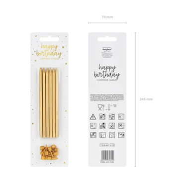 Elegante Geburtstagskerzen für deine Torte! Dieses Set mit 12 beigen Kerzen in 14cm Höhe macht jede Feier etwas Besonderes. Mit goldener Basis für edlen Look - perfekt für Hochzeiten, Jubiläen oder Geburtstage. Aus sicherem, lebensmittelechtem Wachs gefertigt, gleichmäßige Brenndauer garantiert. Einfach in die Torte stecken und anzünden - schon strahlt dein Dessert im festlichen Licht. Auch für Cupcakes und andere Leckereien geeignet. Mach deine Feier unvergesslich mit diesen stylischen Kerzen!