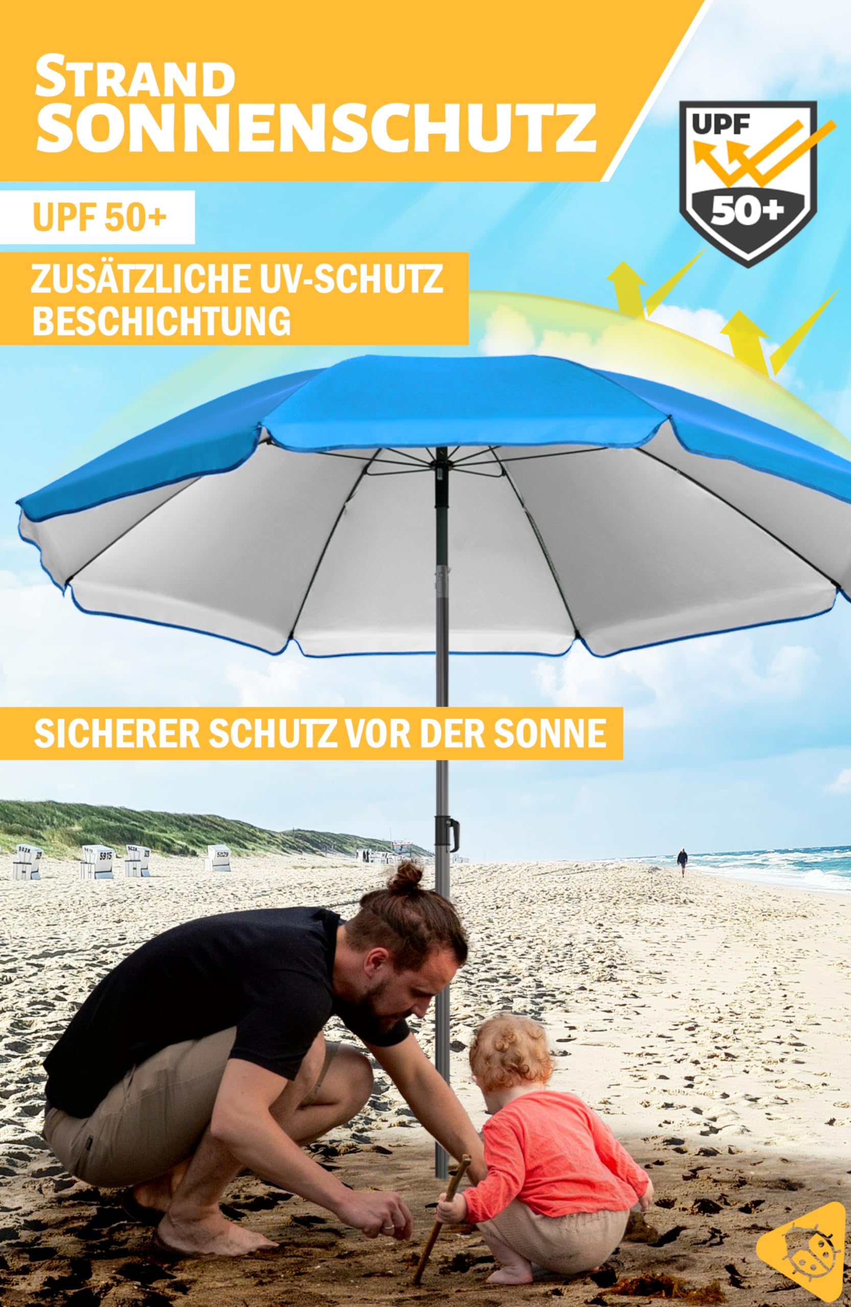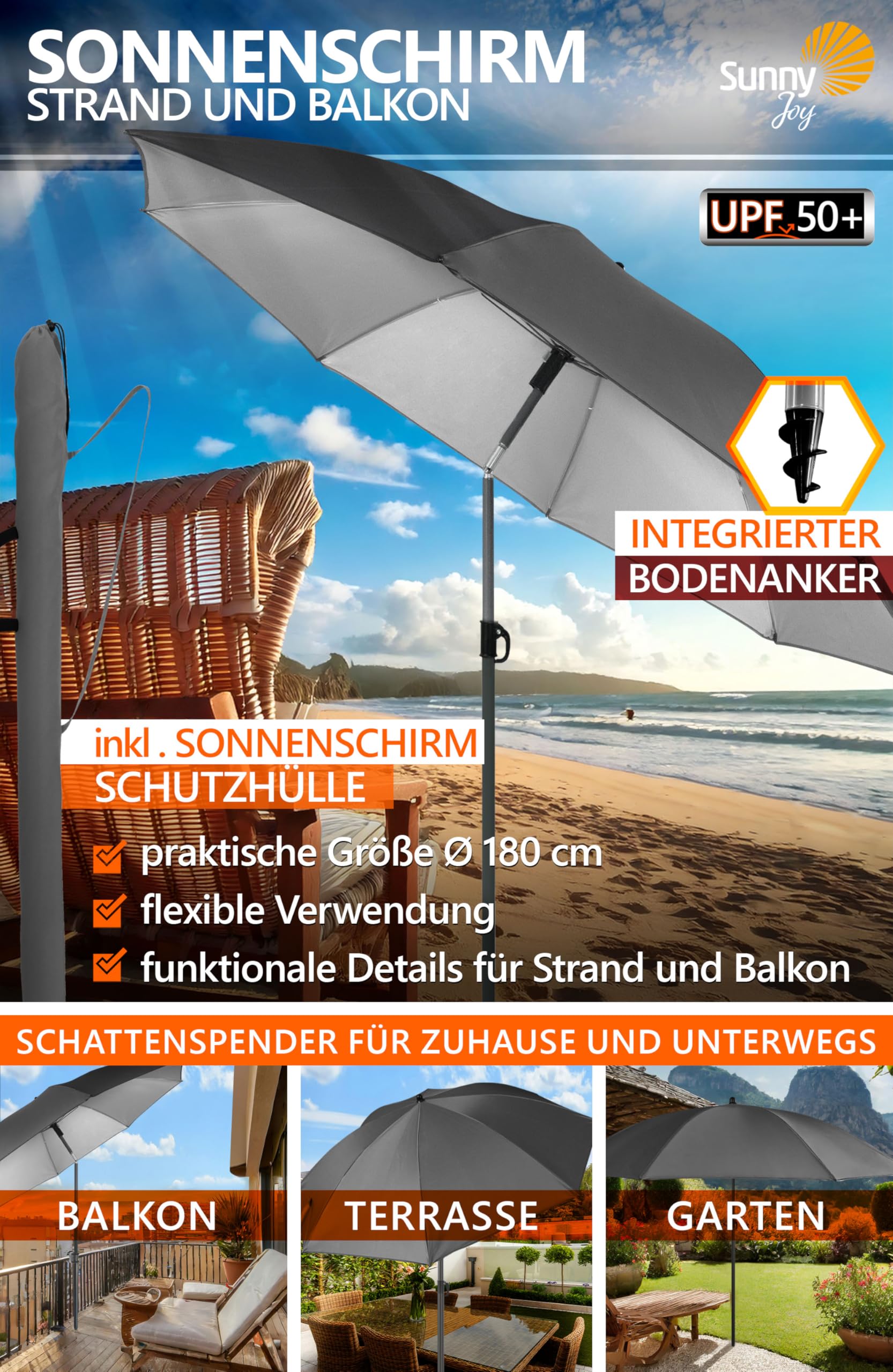 Sonnenschutz to go! Dieser 4smile Strandschirm mit 180cm Durchmesser ist dein perfekter Begleiter für Strand, Garten oder Camping. Mit UPF 50+ schützt er zuverlässig vor UV-Strahlung. Super praktisch: inklusive Tragehülle mit Gurt - einfach einpacken und los! Die windstabile Bauweise hält auch bei stärkerem Wind stand. Mit Erdspieß für festen Halt im Sand und Knickfunktion für flexible Einstellung. Leichtgängige Mechanik, höhenverstellbar - einfach zu handhaben. In beiger Farbe, zeitlos schön. Dein zuverlässiger Schattenspender für entspannte Stunden im Freien!