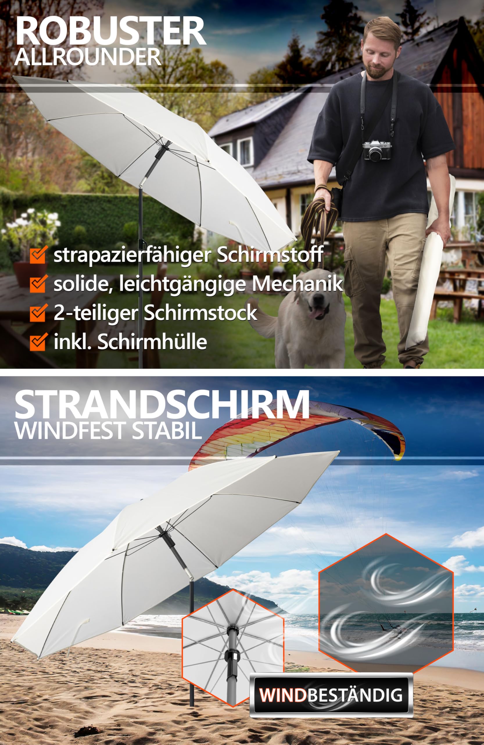 • 4smile Strandschirm 180cm Beige - Windfester Sonnenschirm Mit UPF 50+