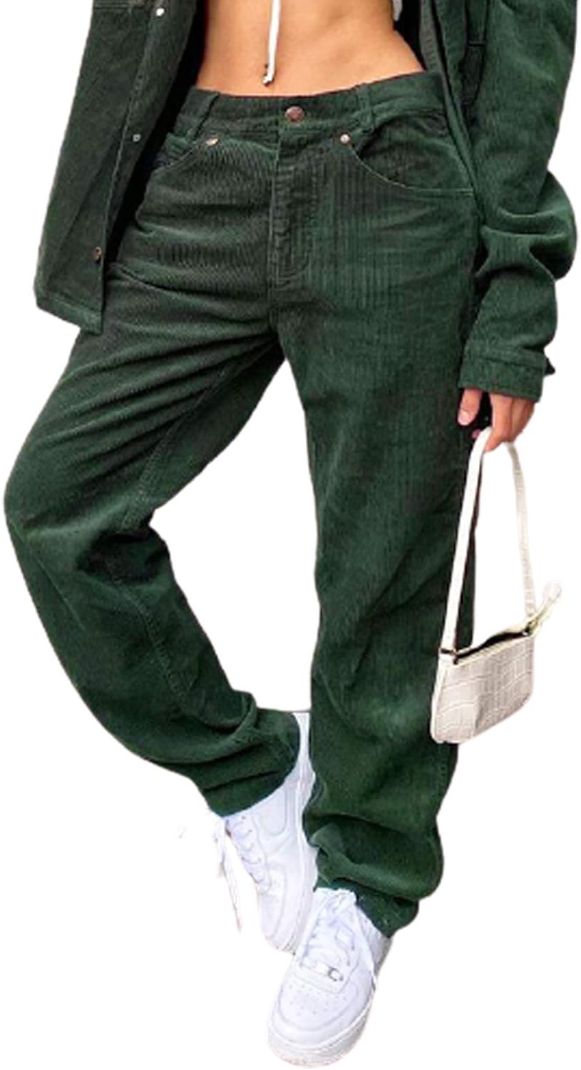 • CheChury Damen Cordhose Weites Bein - Elastische Taille Baggy Hose Für Herbst & Winter