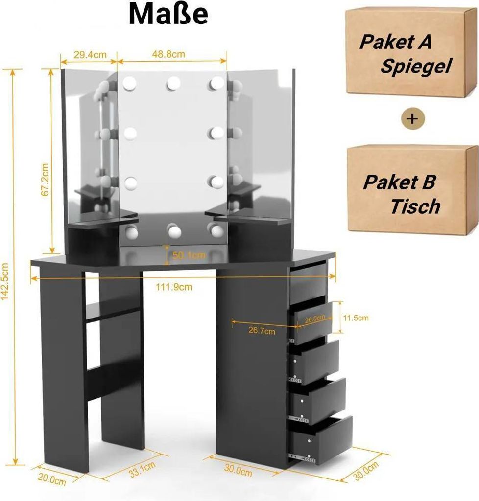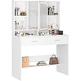LIANWANG Schminktisch Mit LED Beleuchtung - 6 Schubladen & Hocker In Weiß